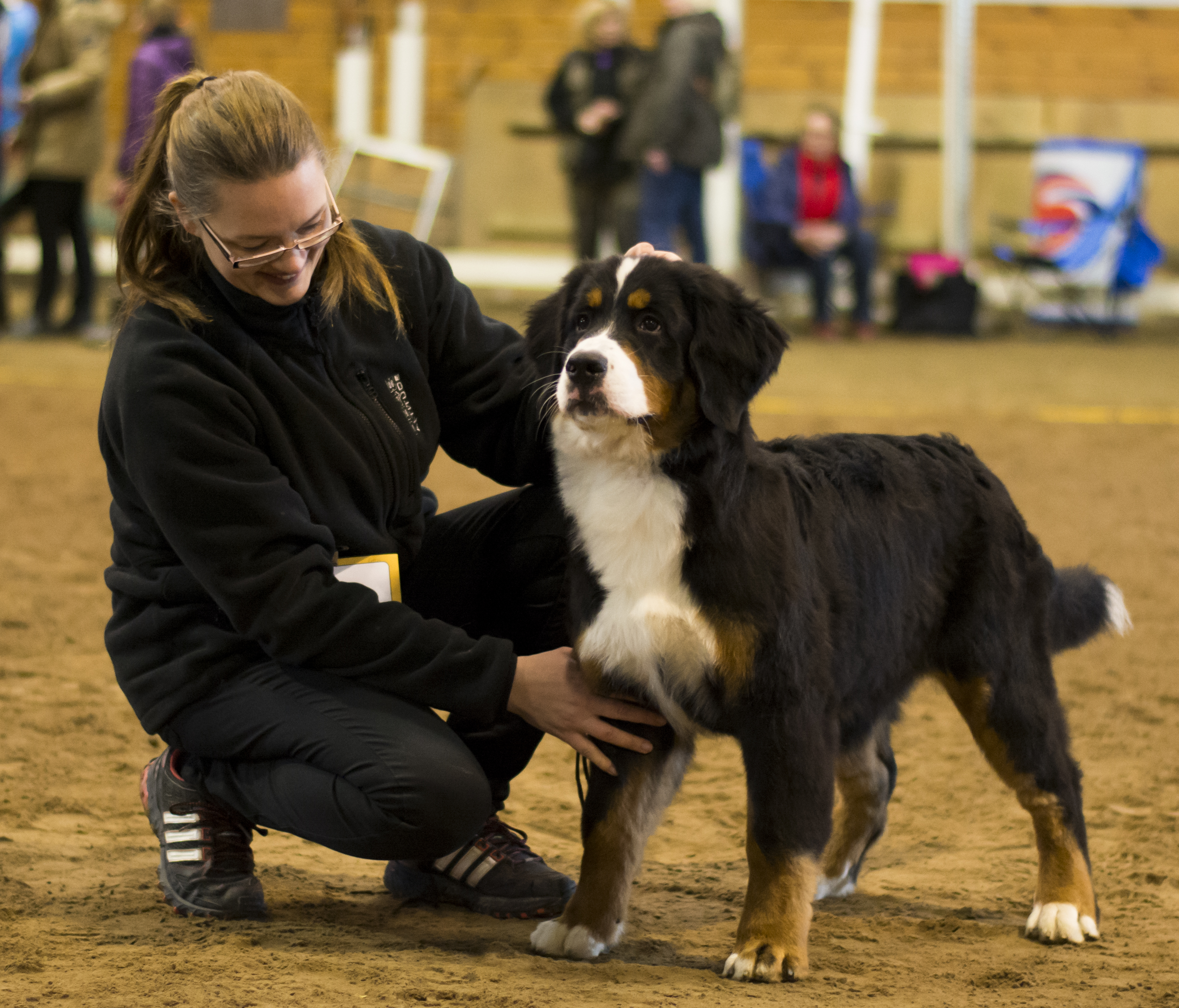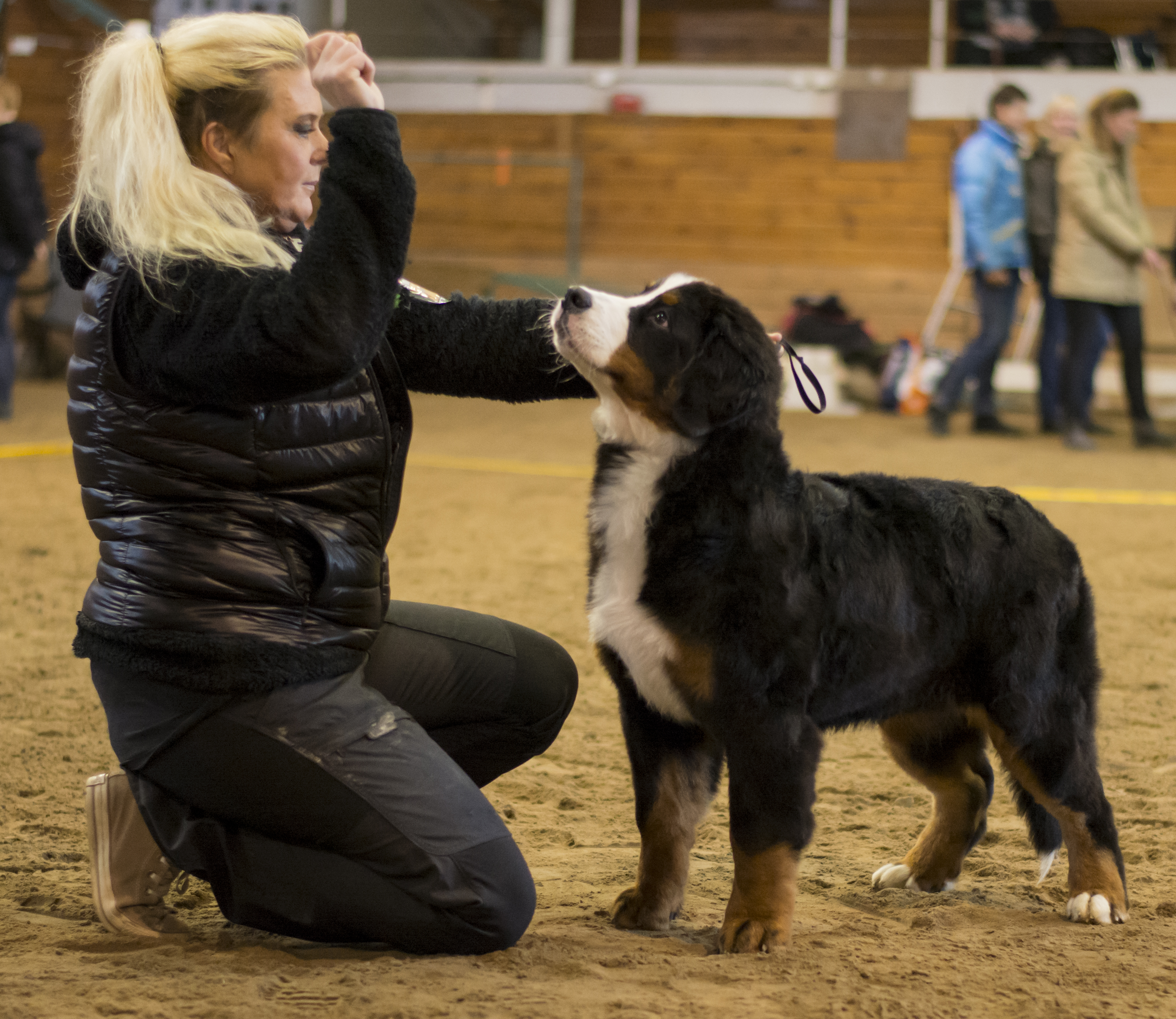 Fota i ett ridhus är ju ingen större hit, skönt att fota bara för sitt eget höga nöjes skull utan att ha nån press på sig att få med alla, vilket i sig är en omöjlighet i Sala där det är tre ringar, vi satt vid hanhundsringen så det blev inte så många tikar på bild, hann i alla fall med en avstickare till valpringen för att fota ”släkten”.