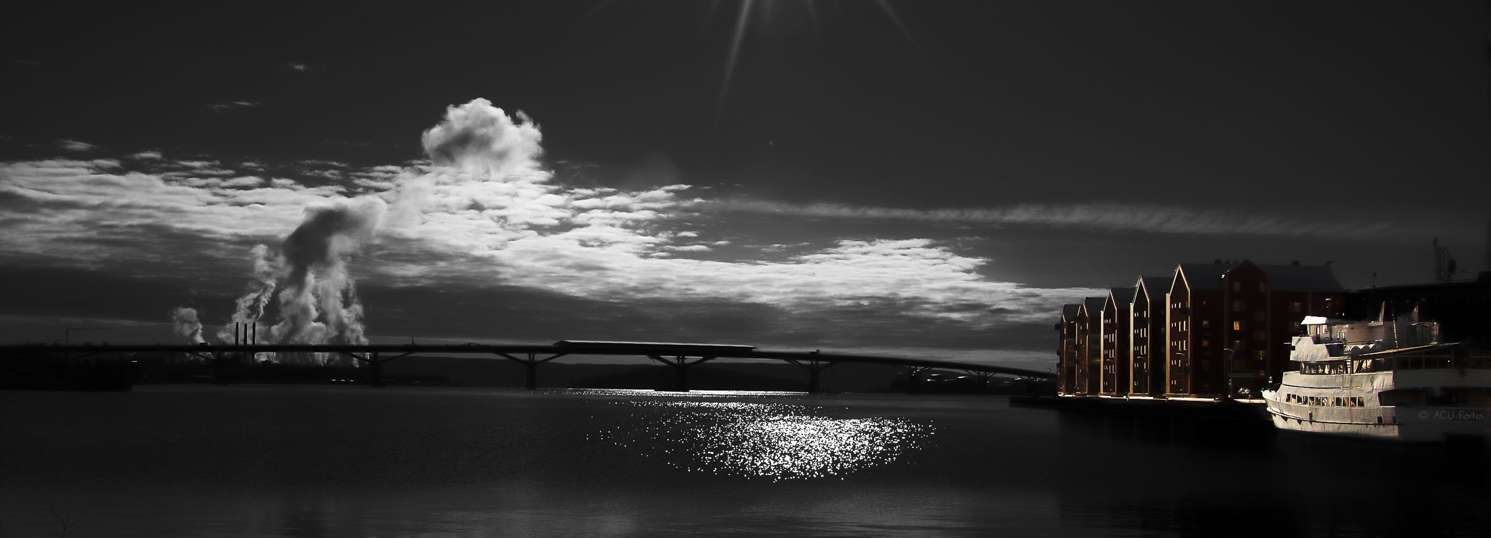 Vår nya bro här i Sundsvall, fotade när vi prommade hem efter att ha lämnat bilen på verkstad ………..fast denna gång var det planerat, grejor som skulle bytas var beställda innan den tog omvägen via en annan verkstad, men nu så! ……..får den f-n rulla löjligt långt innan börsen ska öppnas för annat än bensin, och det med basta!