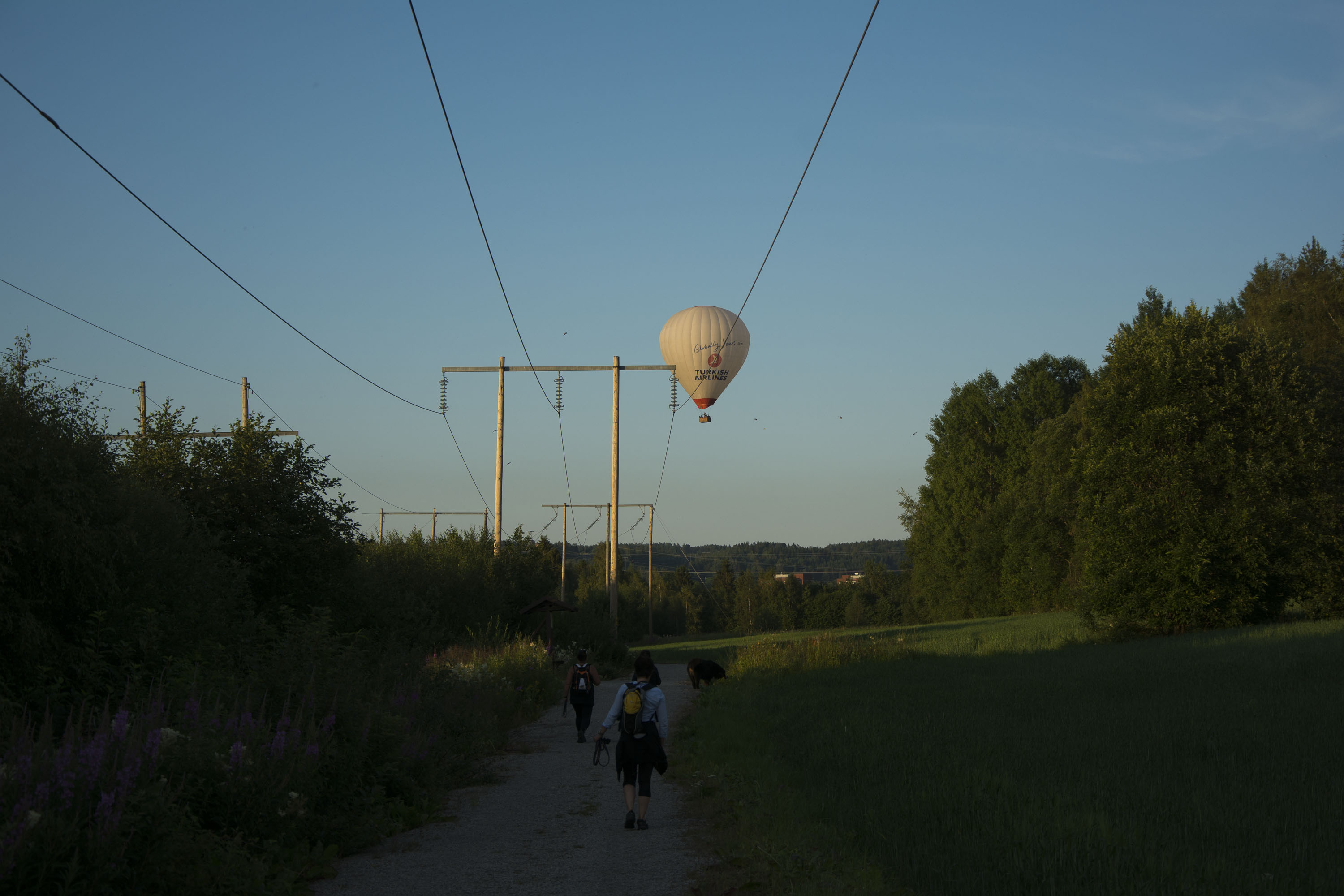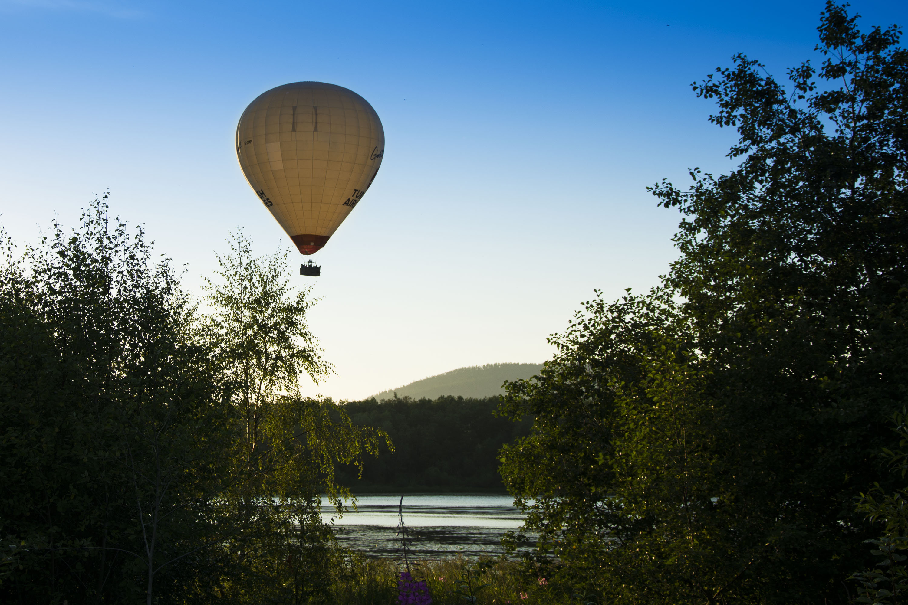Det kom en luftballong, förtvivlat blåsande varmluft för att få ballongen att stiga, men den dalade vackert ner mot Selångertjärnen ……… den hade nog nästan markkänningen innan den började stiga igen, vi kunde se att dom kastade vikter så en viss överlast var det nog!