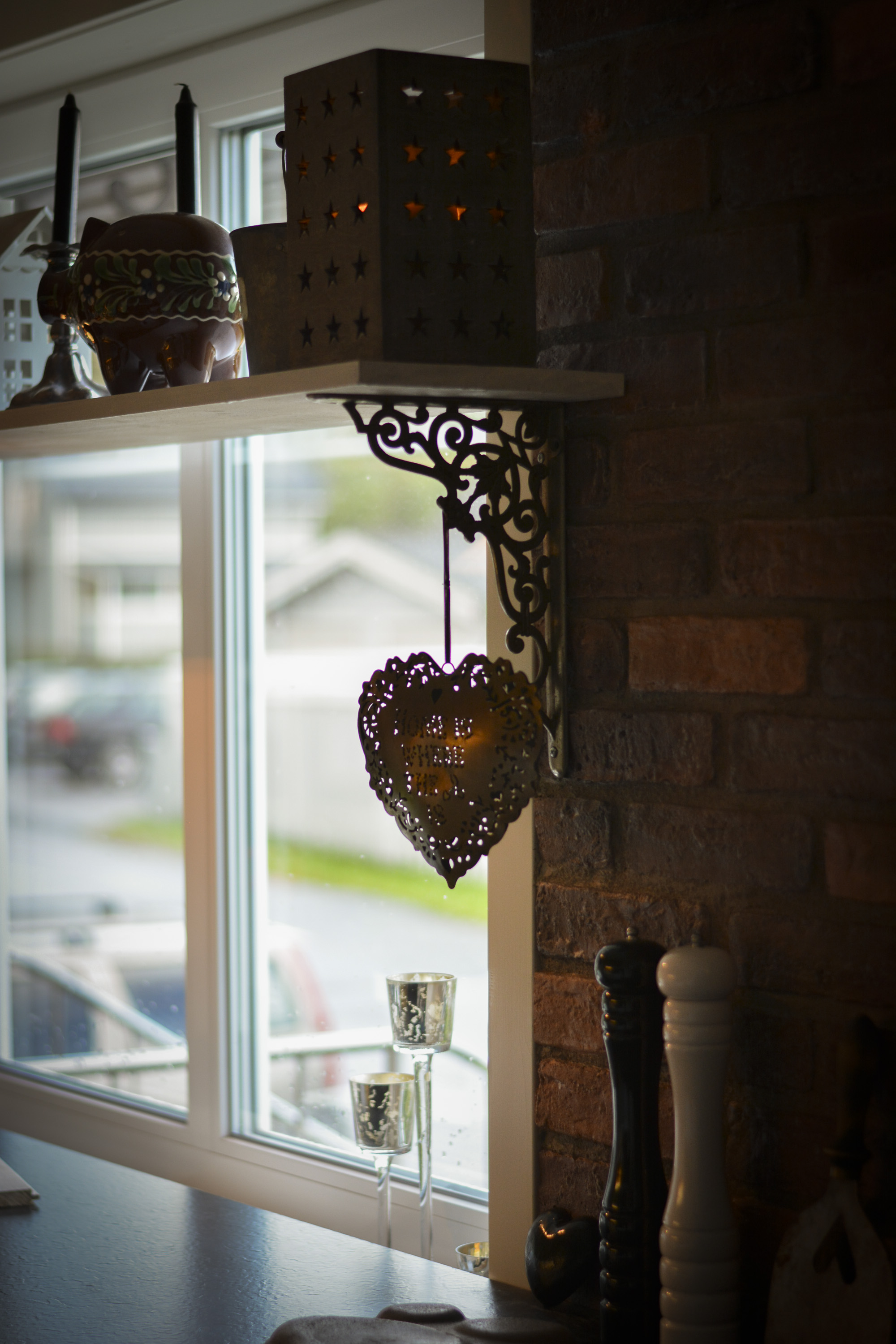 Hyllan vid fönstret har kommit på plats, och som av en händelse så fanns det gamla ärvda beslag att ställa den på, och dom kom INTE från frigge faktiskt, dom har suttit under en hylla i gästrummet men gör sig bättre i köket.