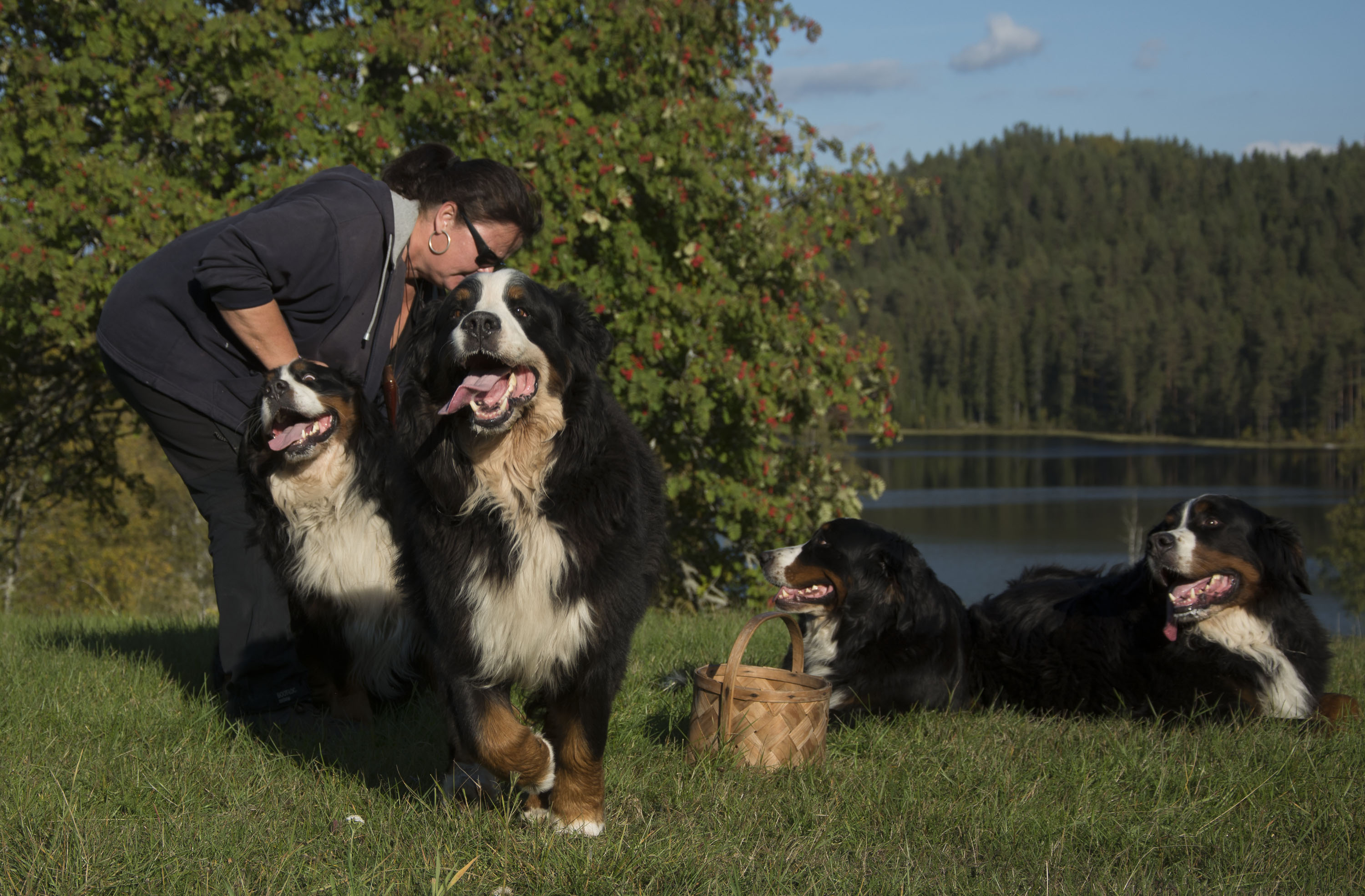 Aston som satt fint drar mot matte, Lukas blir avundsjuk på att Aston får springa till maaammma och ser ut som om en smärre hundmisshandel utövas mot honom ………inga hundar eller människor kom till skada under denna fotosession!