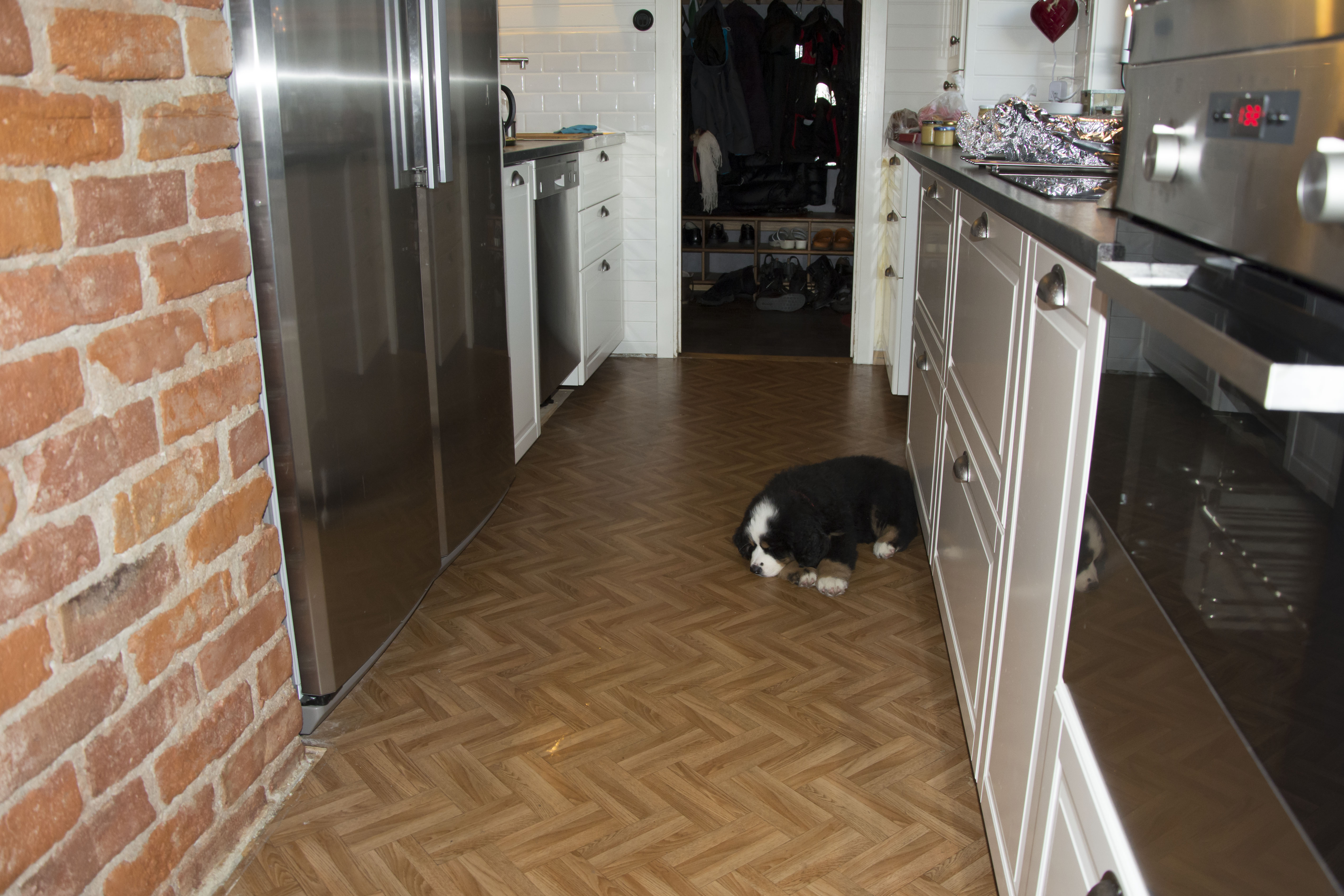 Klickgolvets vara eller icke vara har också varit ett hett ämne, jag gillar skarpt utseendet på det golv vi valt ut men jag oroar mig både för rengöring och halka för hundarna.