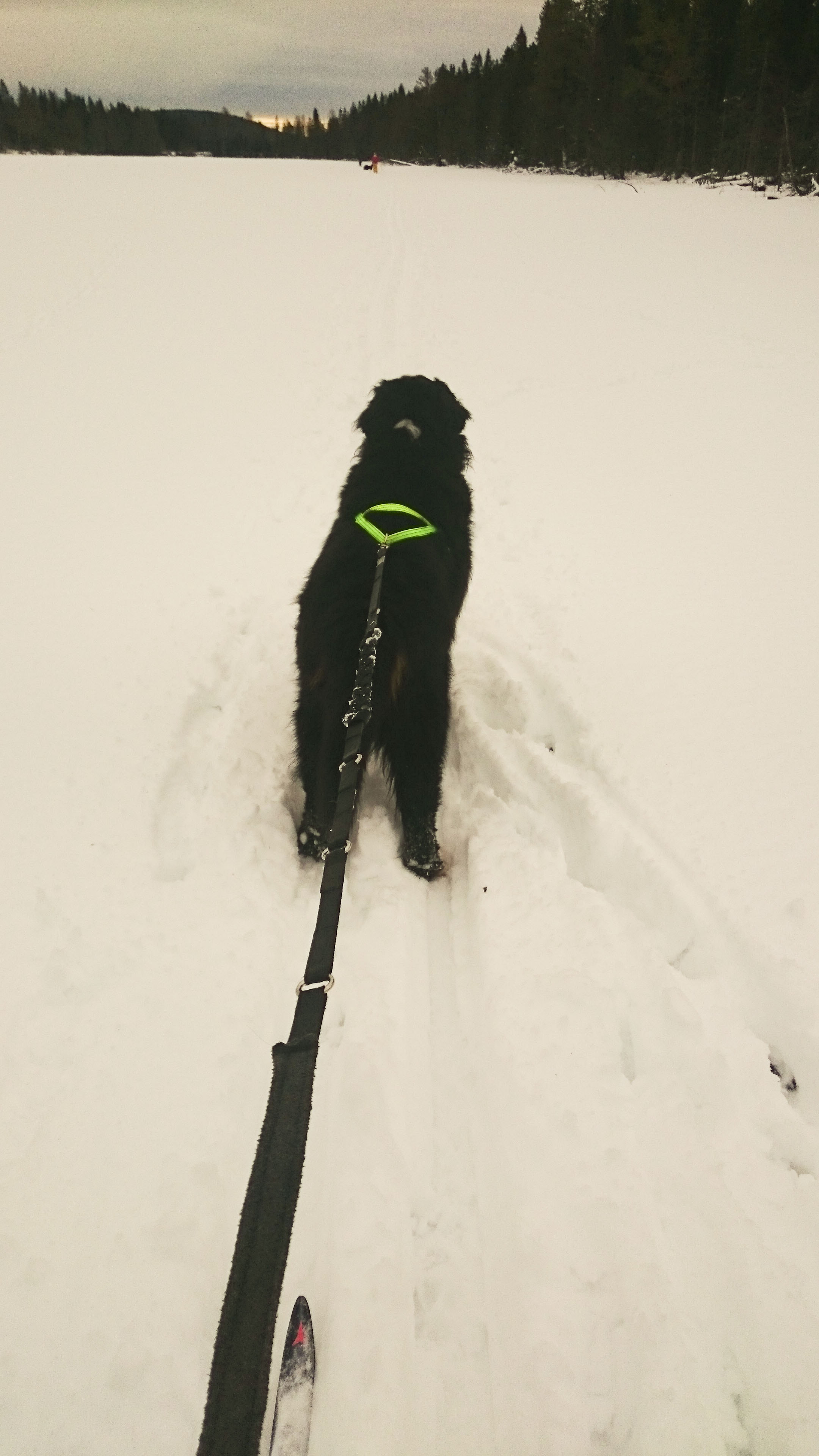 Tanken har ju funnits i några år men det har verkat krångligt och omständligt då jag gärna vill ha hundarna med, och synen som uppenbarat sig innanför pannbenet har väl mest involverat mej i en hög i snön med skidor och stavar åt alla håll ………
