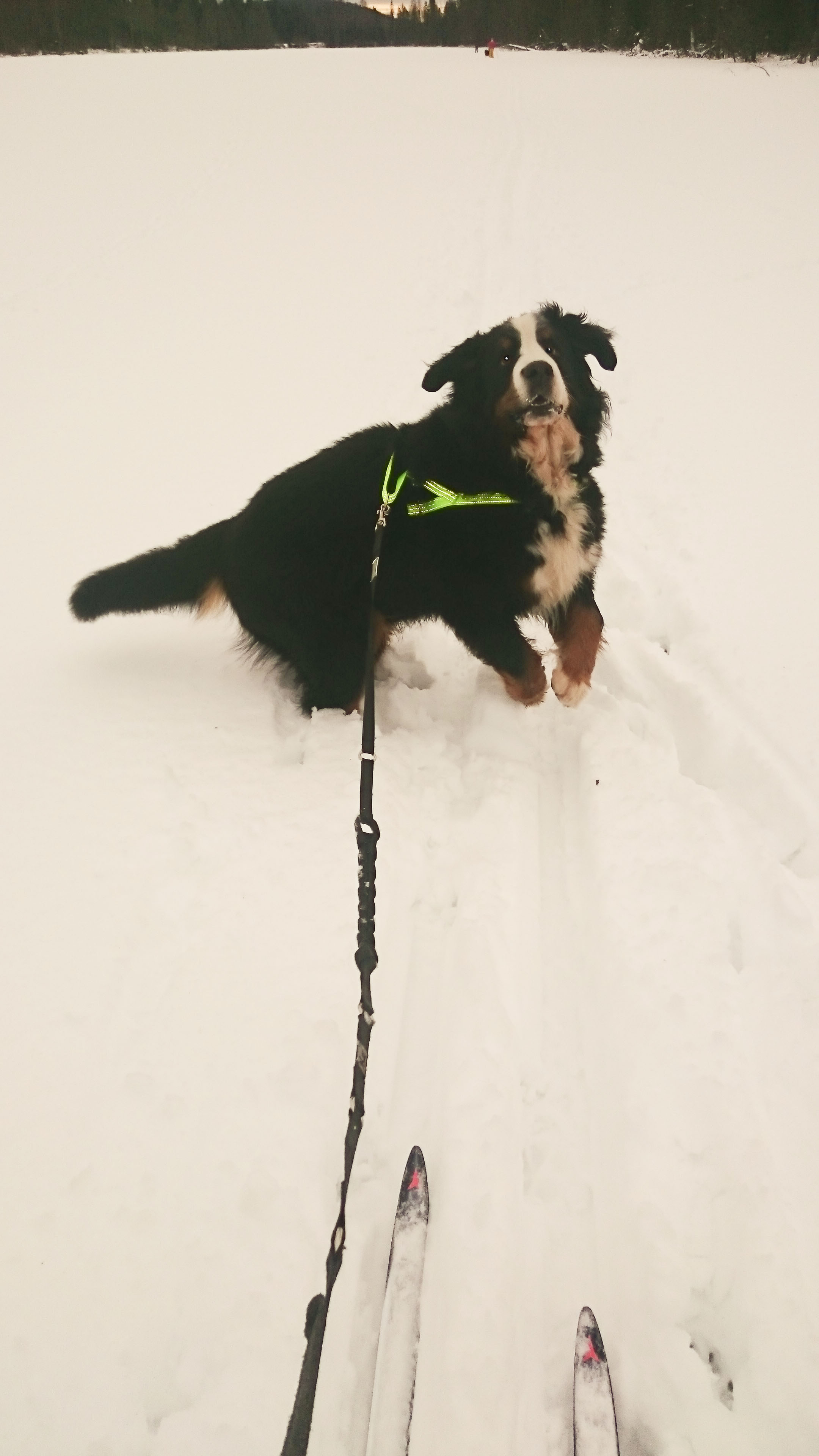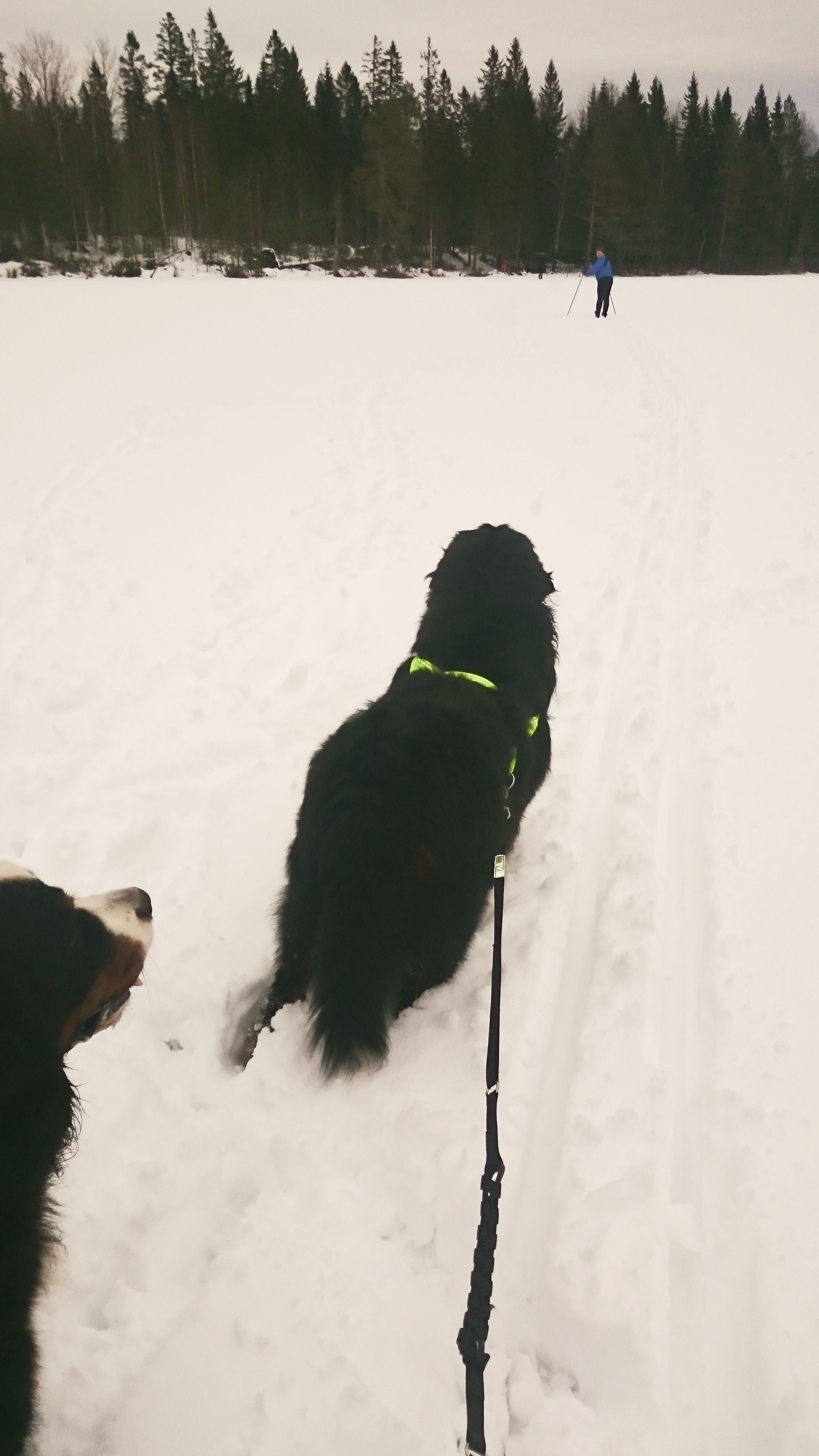 Nu ska jag inte sticka under stol med att vi har lång väg att vandra innan det sitter som en smäck, två hundar som konstant turas om att trampa på skidorna där bak gör skidturen en aningens stapplig milt uttryckt.