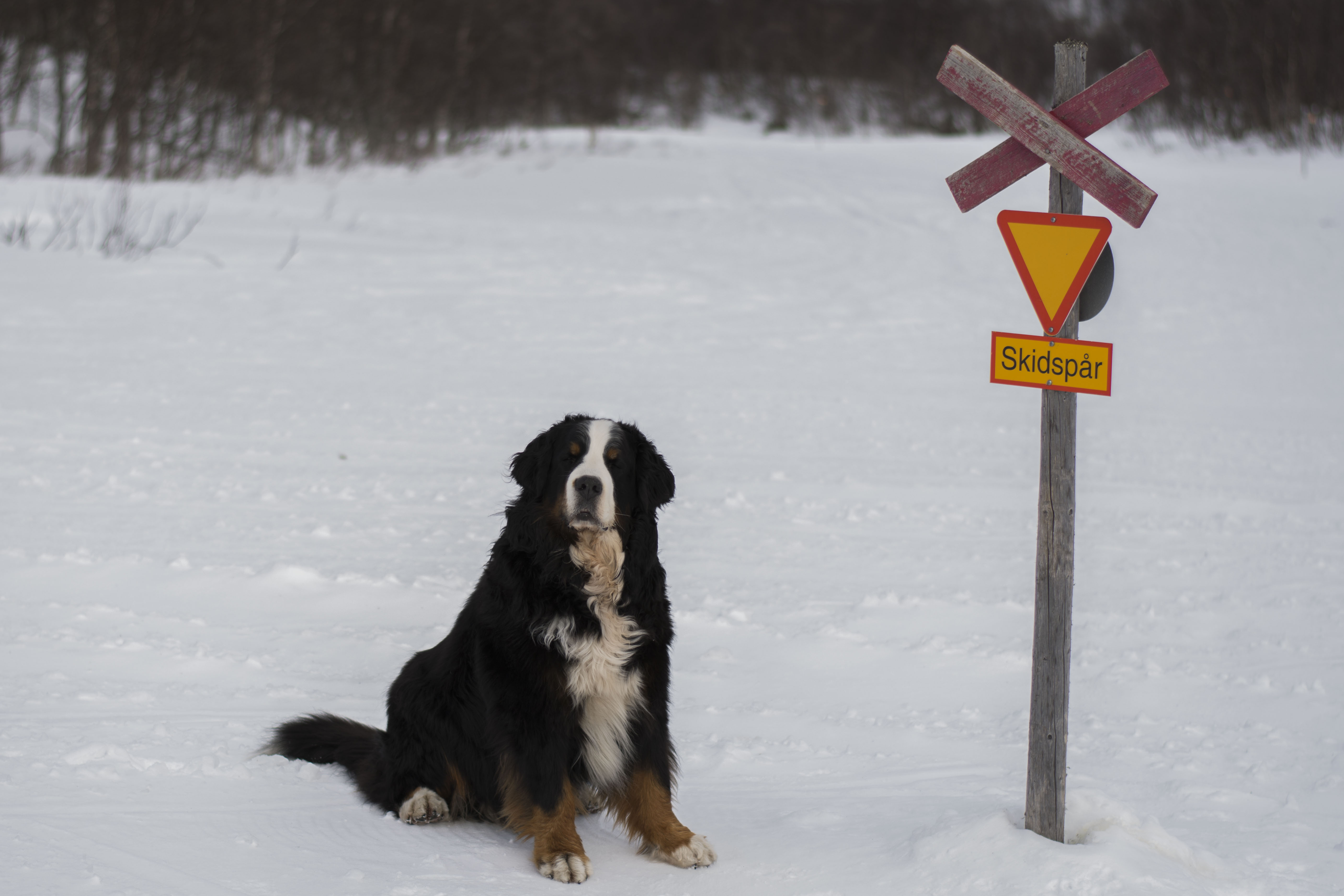 Om man blundar riktigt hårt så ser man inte att det står skidspår på skylten tycks busbullen tänka.
