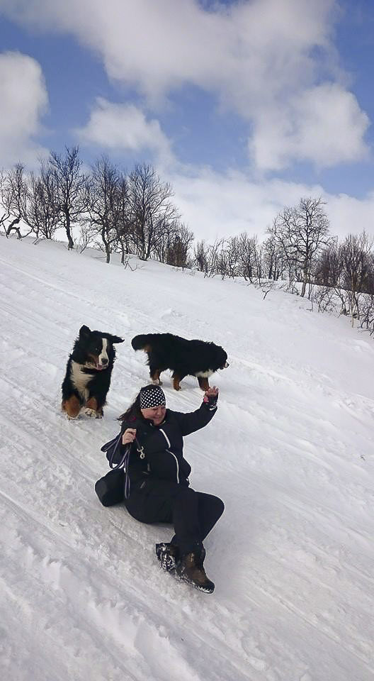 Den hårda vinden inbjöd inte direkt till nån skidåkning så vi gick en rejäl promenad med hundarna och sen begav vi oss mot Norge.