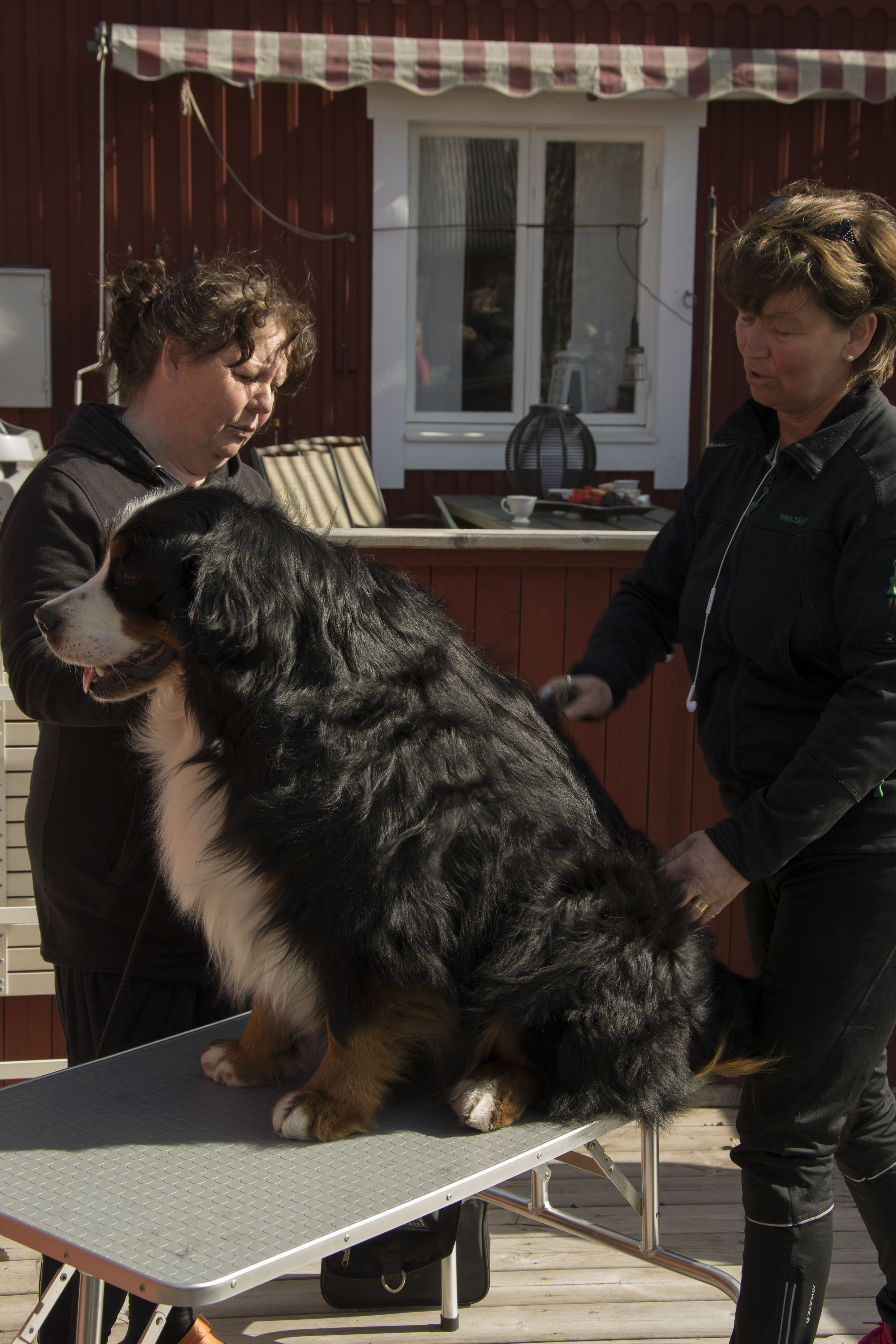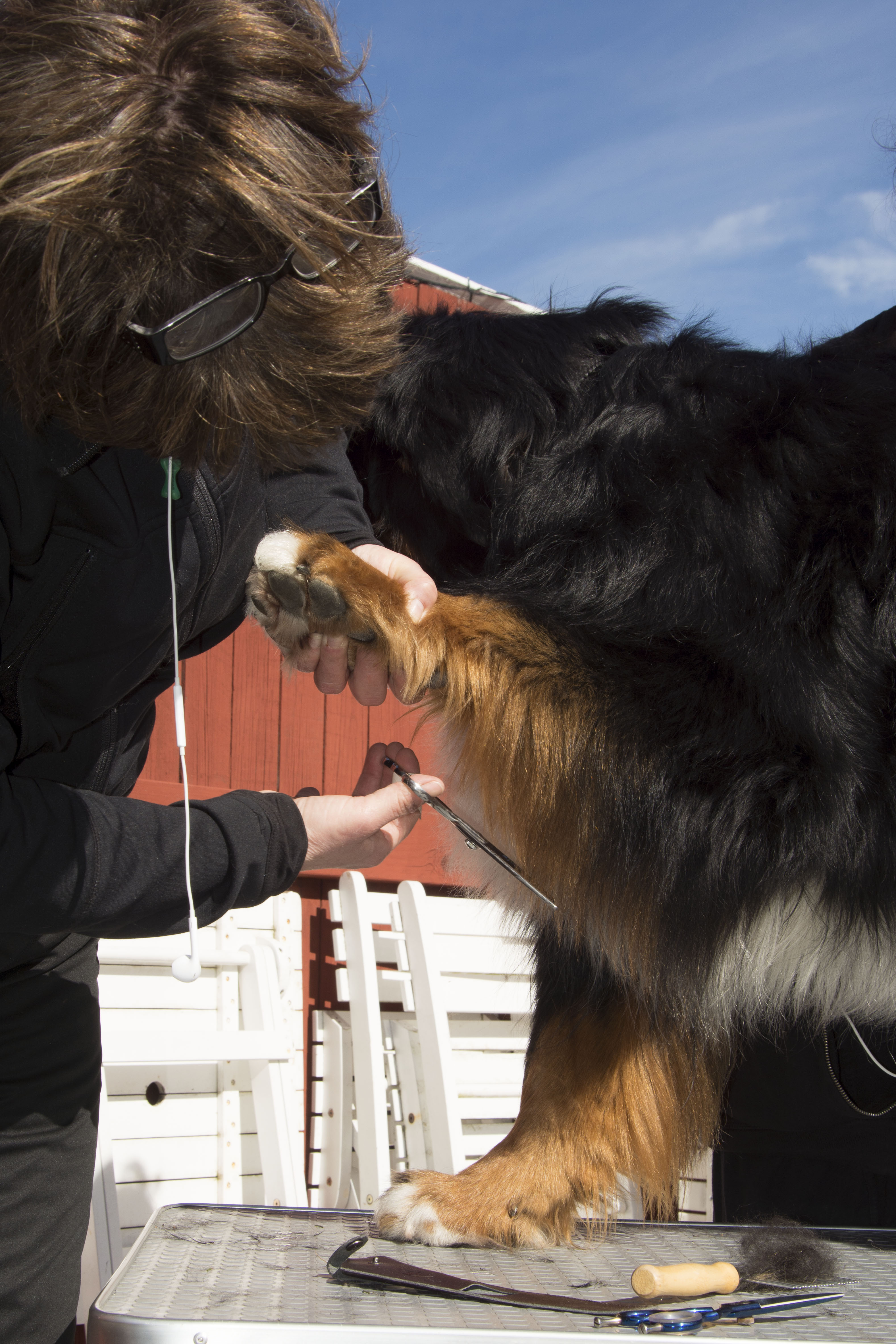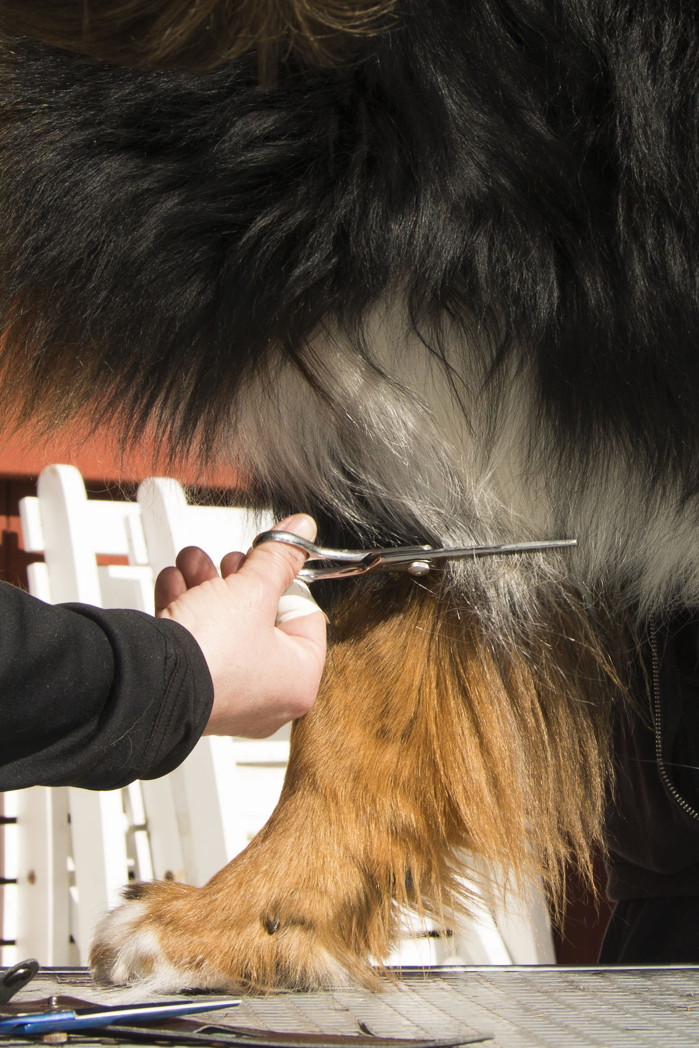 Dagen efter promenaden på stan hade vi pälsvård i Kovland, Lisa från Bernerdalens kennel kom och visade hur vi ska sköta pälsen på bästa sätt, hur man klipper tassar runda och fina och hur man kan snygga till lite genom att ta bort det som är frissigt.