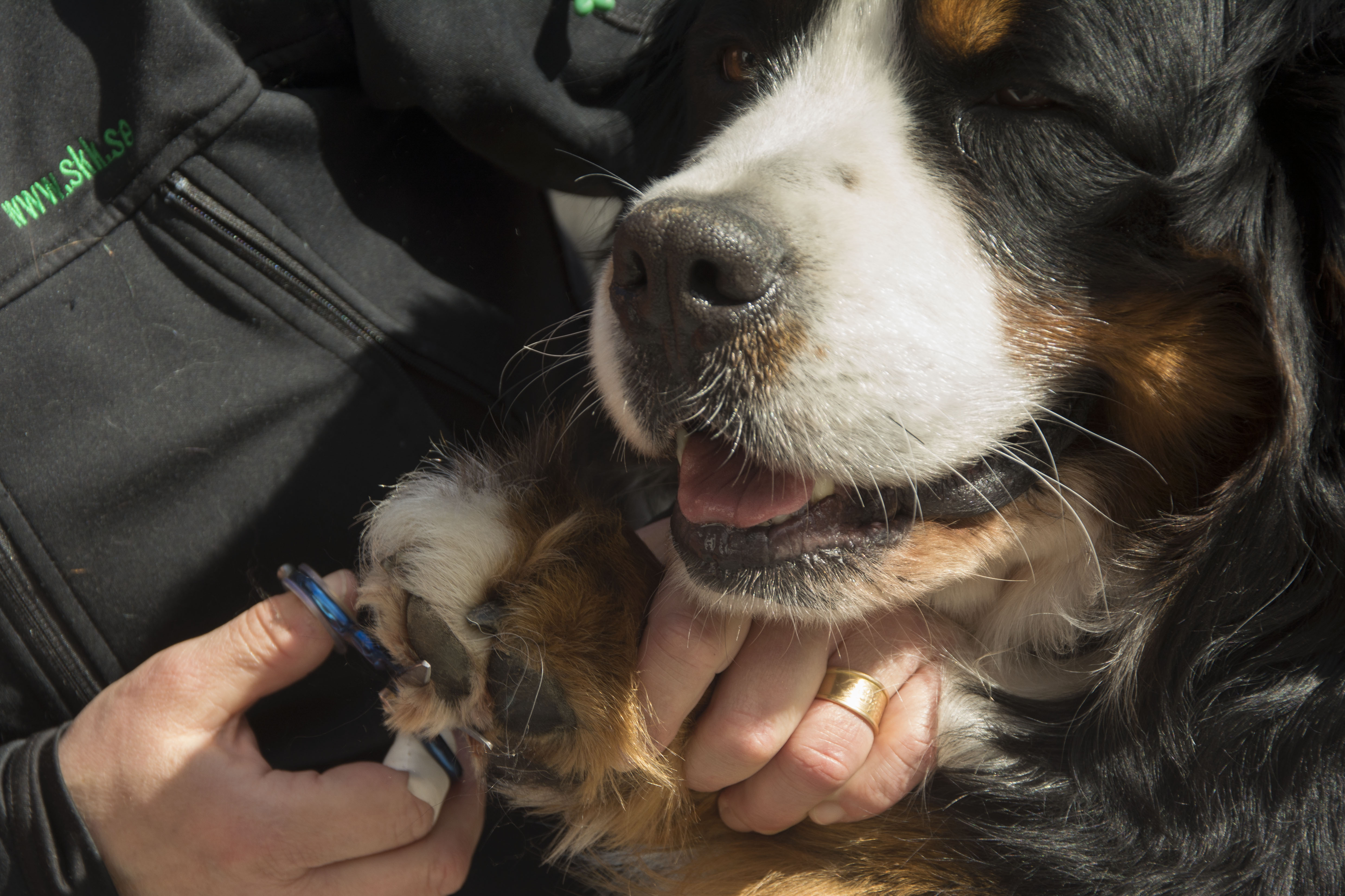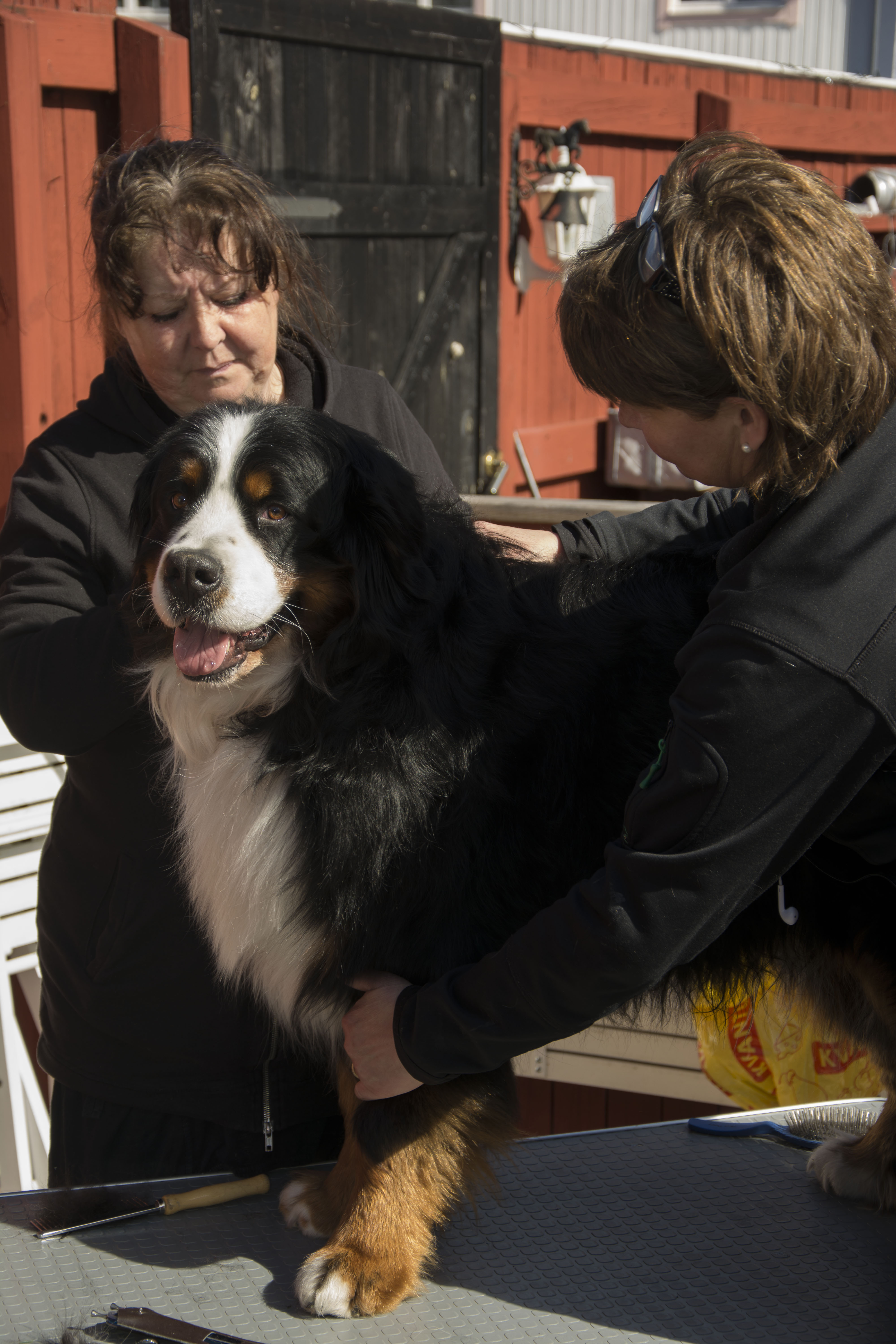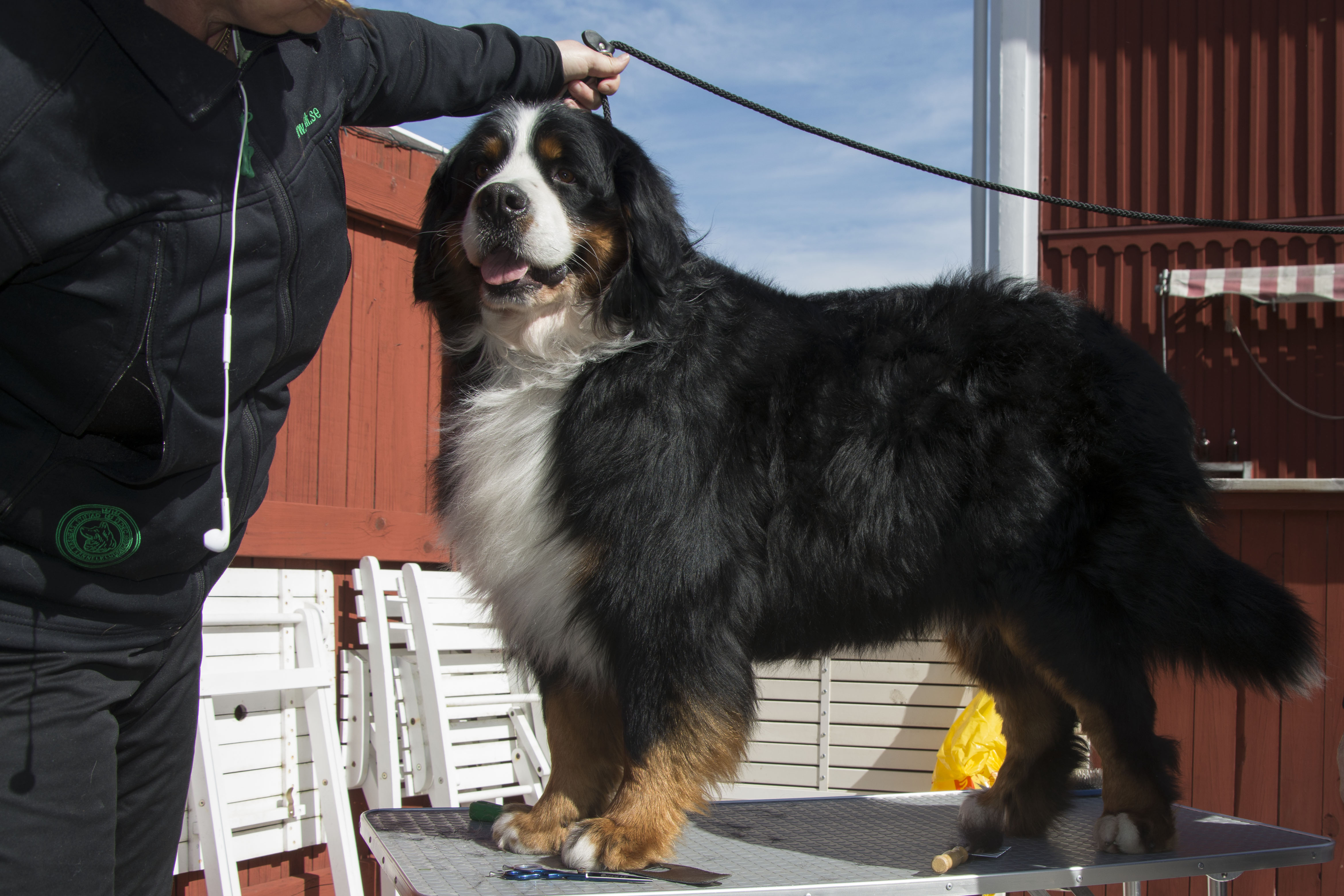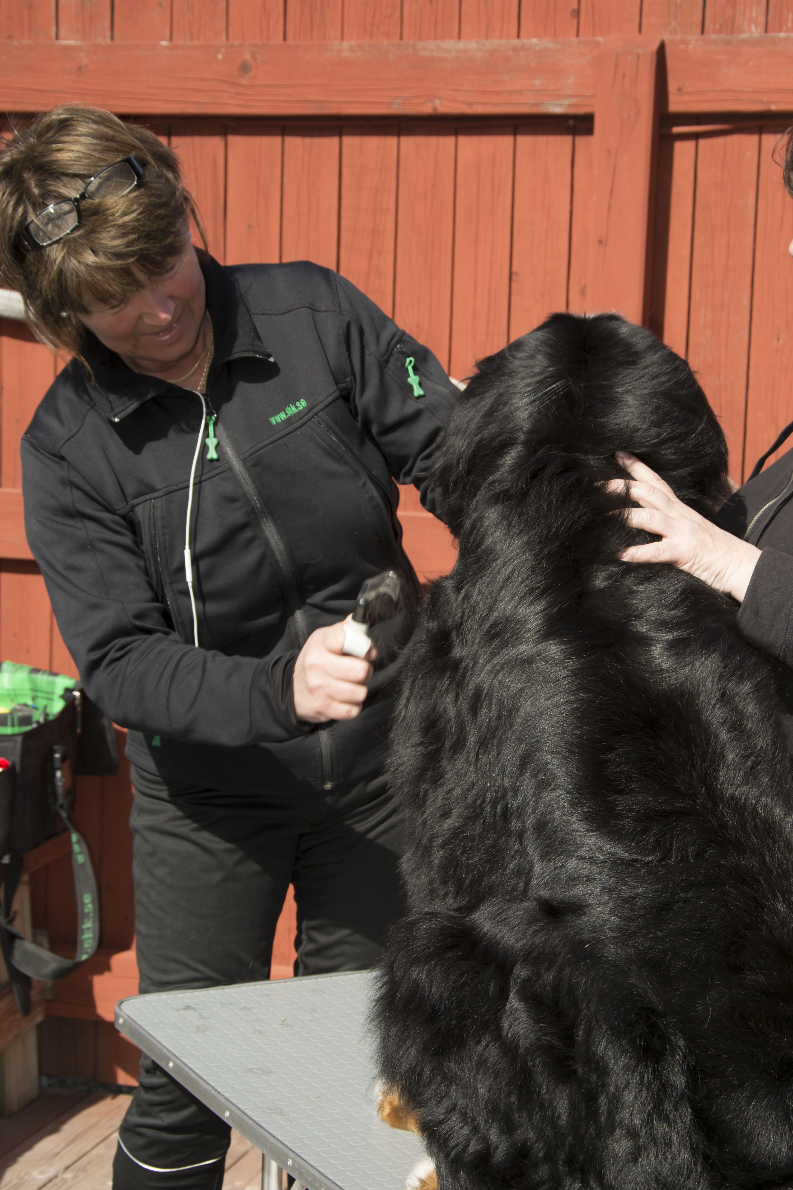 Dagen efter promenaden på stan hade vi pälsvård i Kovland, Lisa från Bernerdalens kennel kom och visade hur vi ska sköta pälsen på bästa sätt, hur man klipper tassar runda och fina och hur man kan snygga till lite genom att ta bort det som är frissigt.