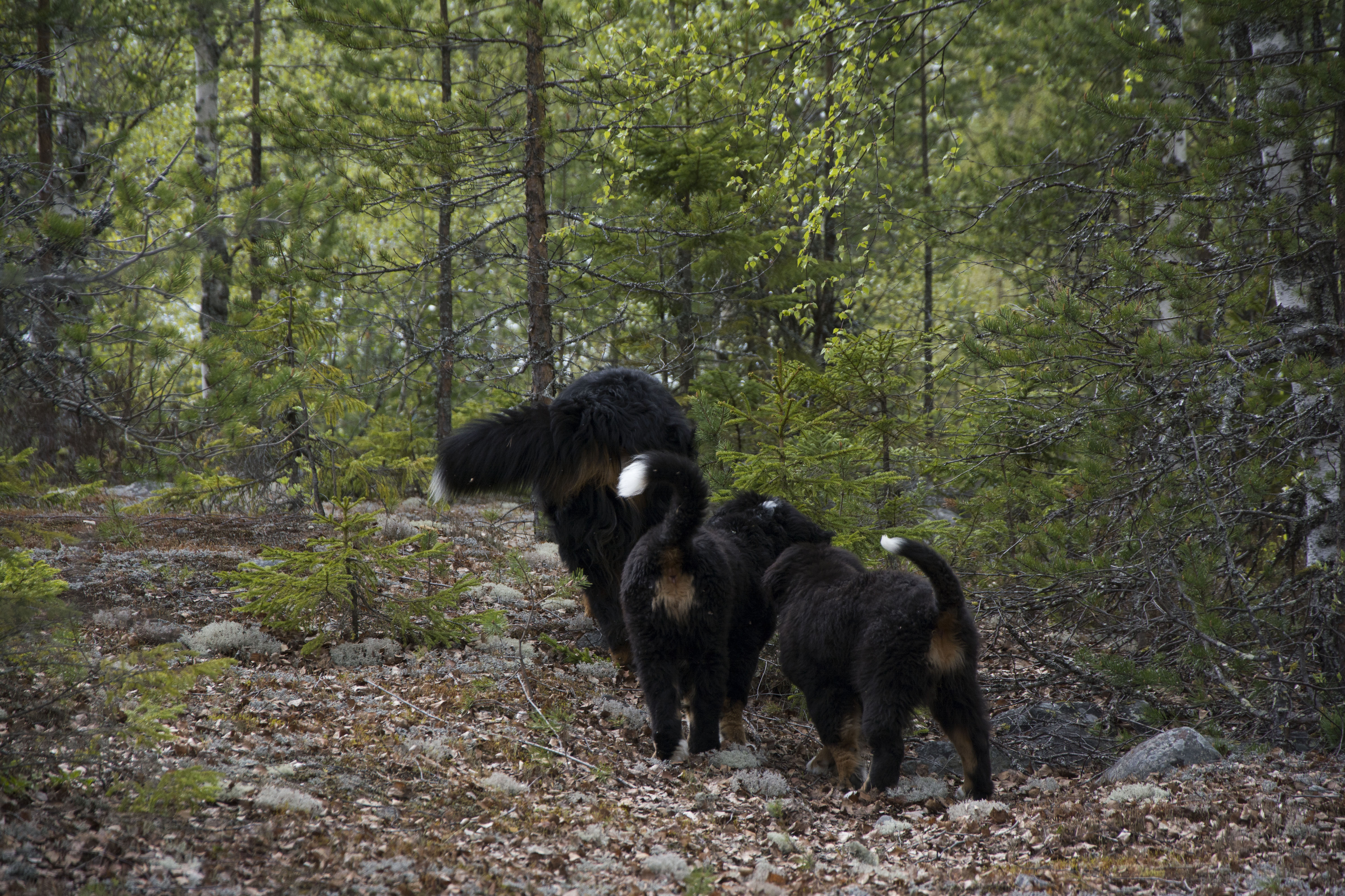 Lukas tog med sig barna på en promenad, tänkte nog att dom kunde stanna i skogen, han går helst åt andra hållet när det finns valpar i närheten, eller så pressar han sig emellan så att dom inte stjäl all uppmärksamhet för han är också söt, så det så!