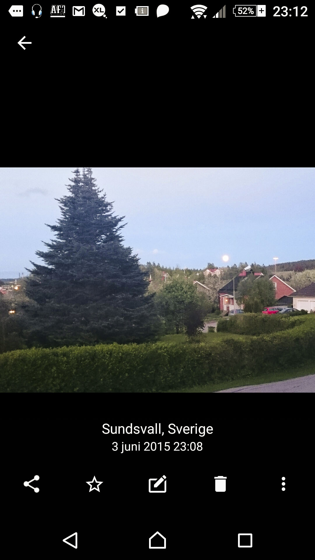 Tog denna bild igår kväll, månen hänger borta i kanten men det är nästan lika ljust som på dan kl 23.08 …….HÄRLIGT!