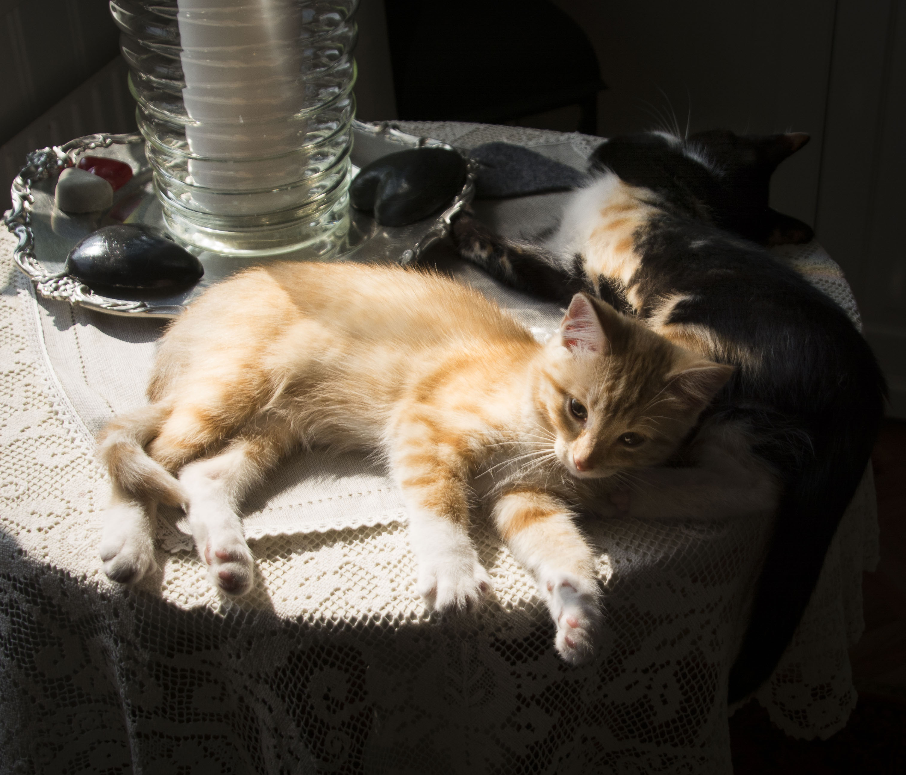 Kattfröknarna driver sin husse till ett smärre vansinne, jag kan förstå det, här har dom 200 kvadrat att härja på, det är skillnad mot för hussens 2:a, men dom kommer att lugna sig som vuxna …….hoppas vi, eller så gör dom som Aston Martin och drar ut på det hela och kör full gas i sju år ……….