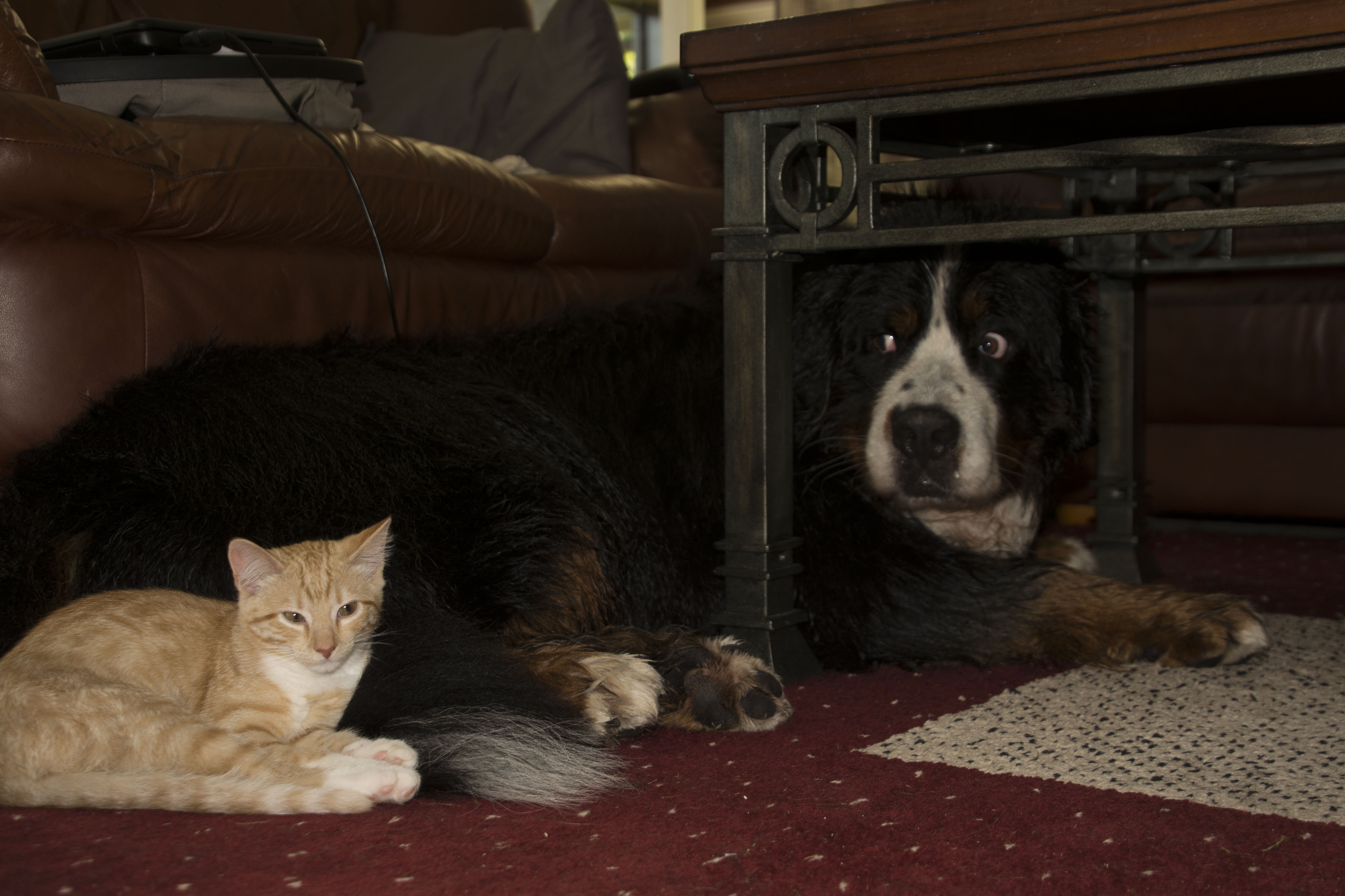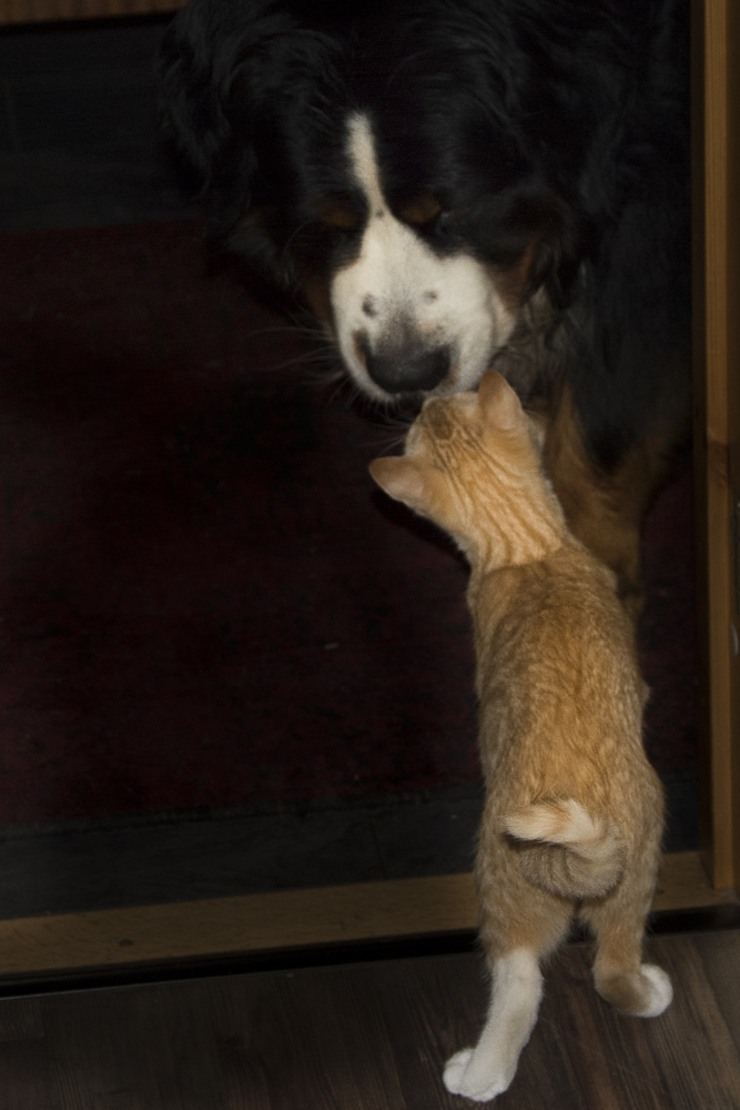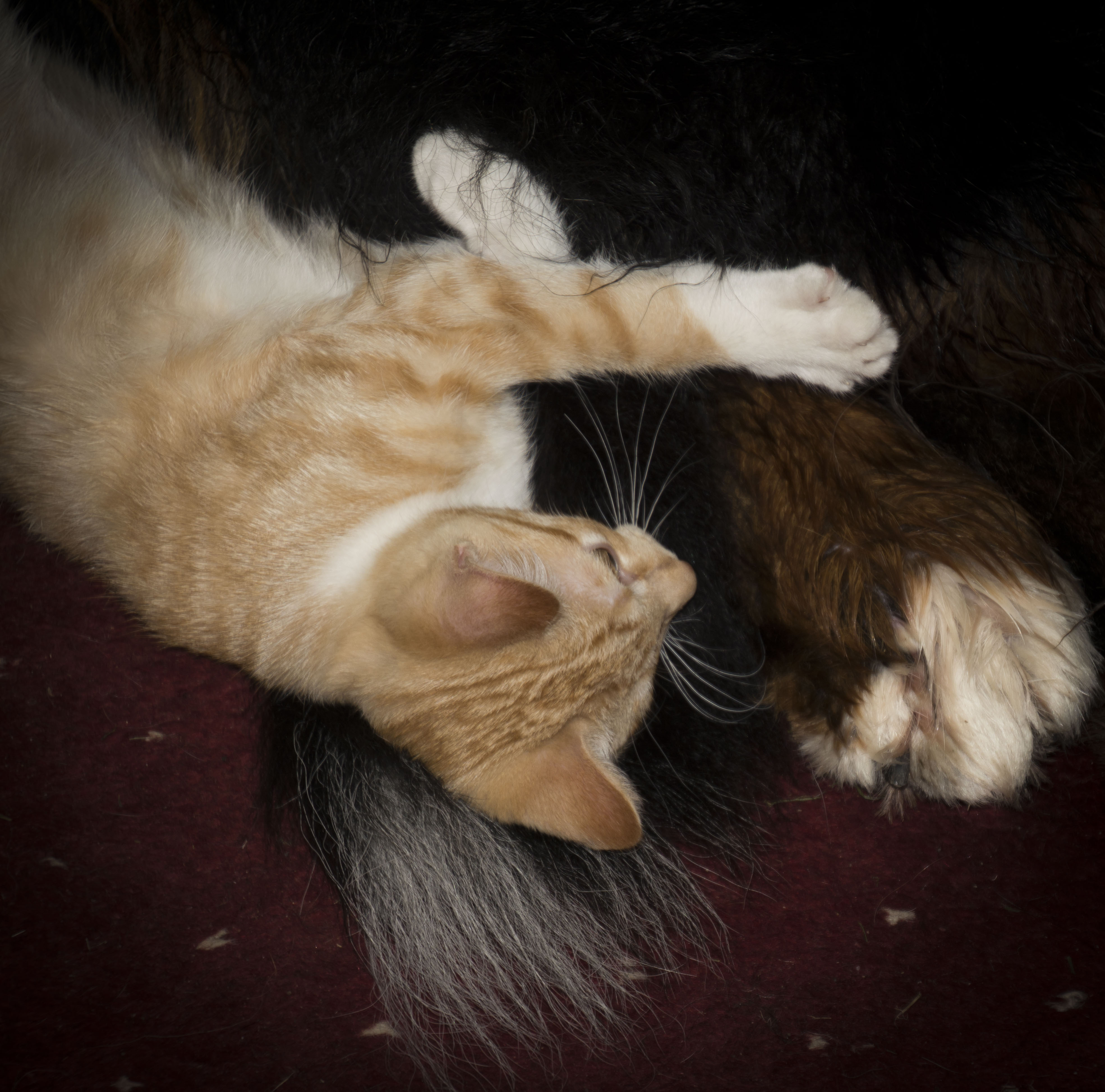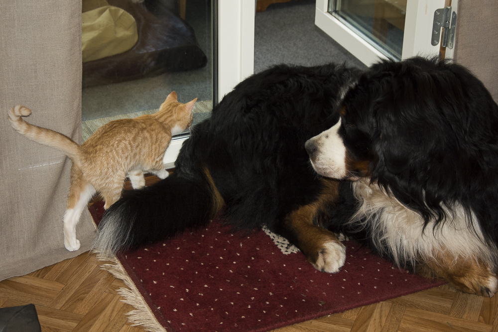 En nybadad Lukas var visst oemotståndlig ………Lukas själv tyckte nog att måttet var rågat med både kamning, bad och närgången katt på en och samma förmiddag!