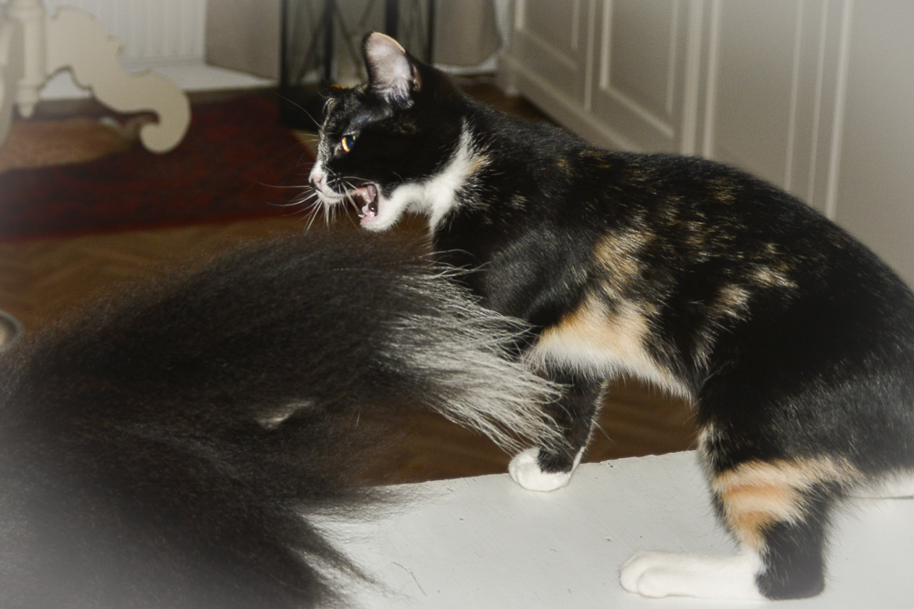 Det är Magnus som är husse och hos honom bor dom, sen är dom ju liksom lite livliga i kattungestadiet så då kommer dom på internat till ”farmor” mellan varven så att deras husse får sova och vila nerverna.