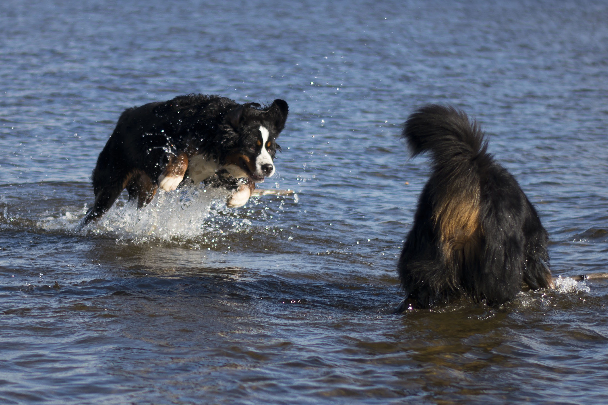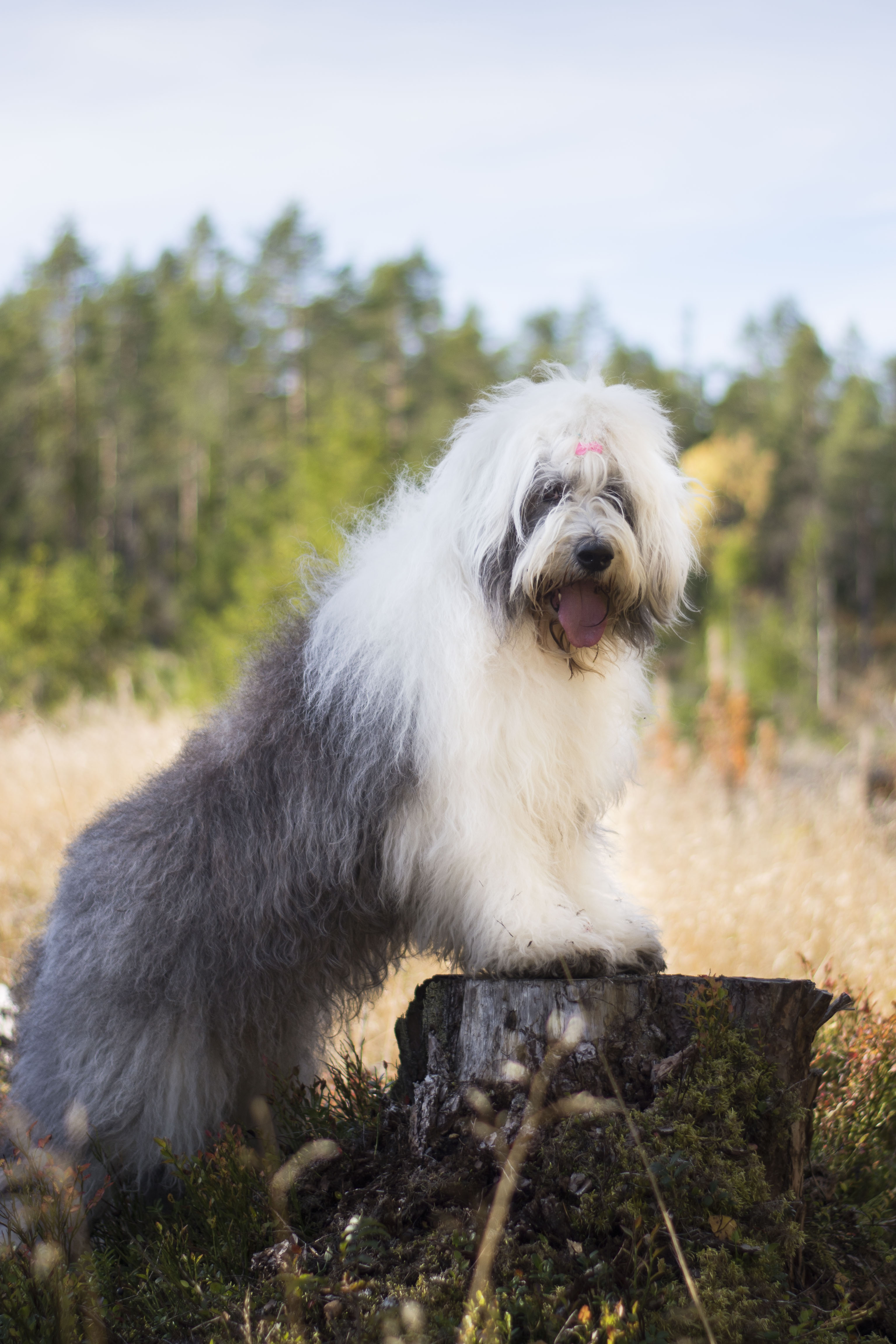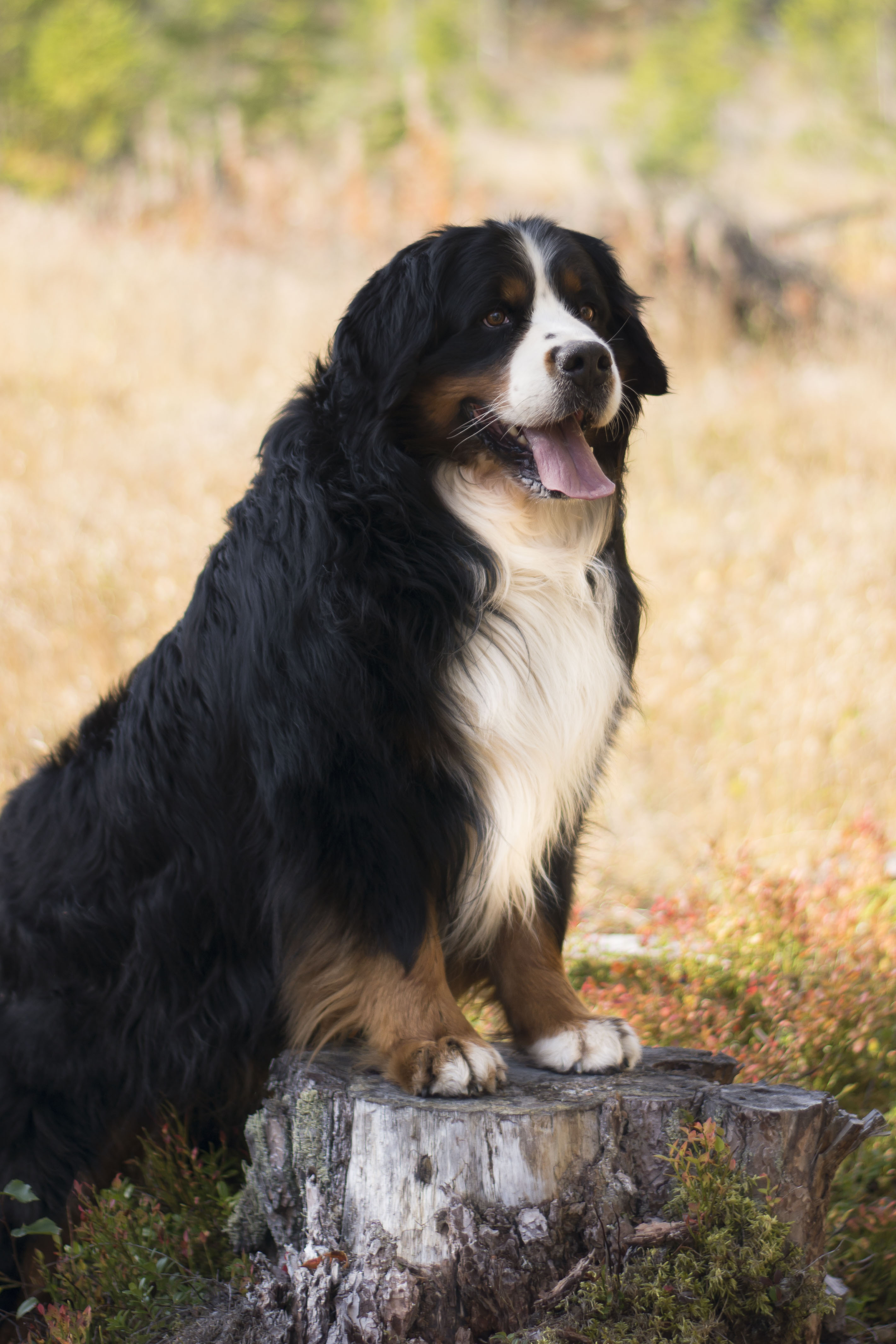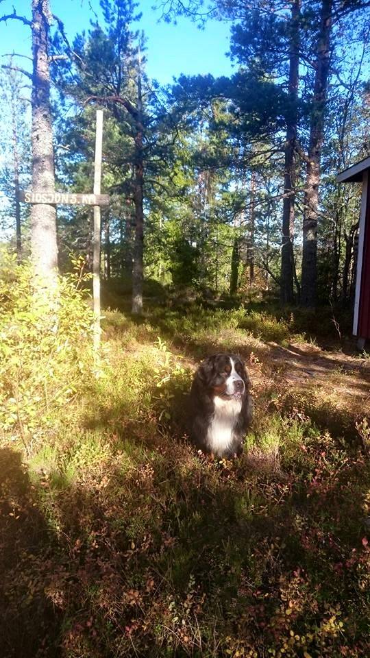 Igår hade vi sennenträff, på väg tillbaka på promenaden så såg jag denna stubbe så jag sa åt Kicki att hon skulle placera Diva där för det var så fin bakgrund, hon skrattade och sa att du kan ju visa först med Lukas …….och tamejtusan! Jag fick både upp honom på stubben och hann några kort, ganska fantastiskt eftersom det var flera andra hundar i vägen som skulle styras bort innan jag kunde ta bilden.