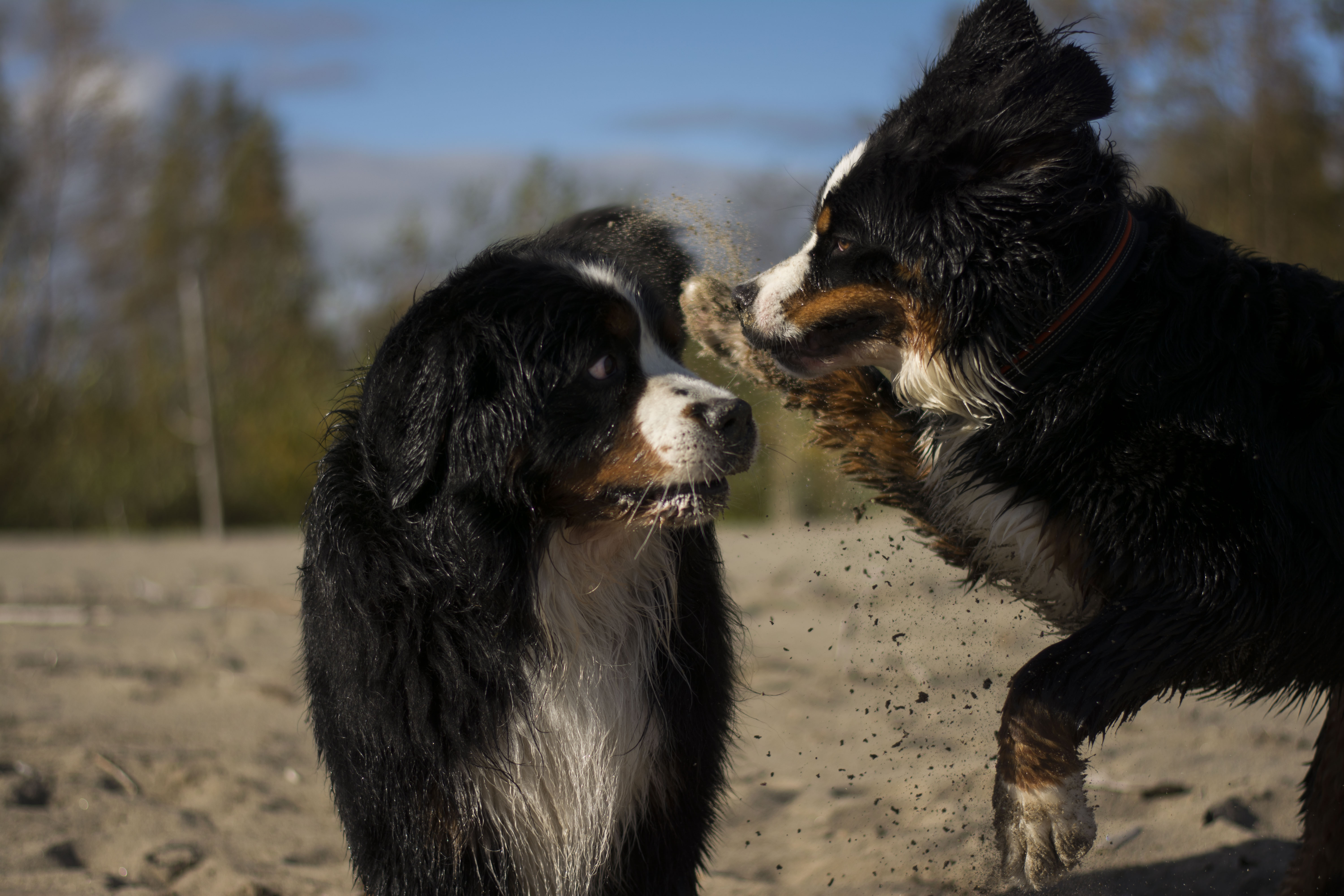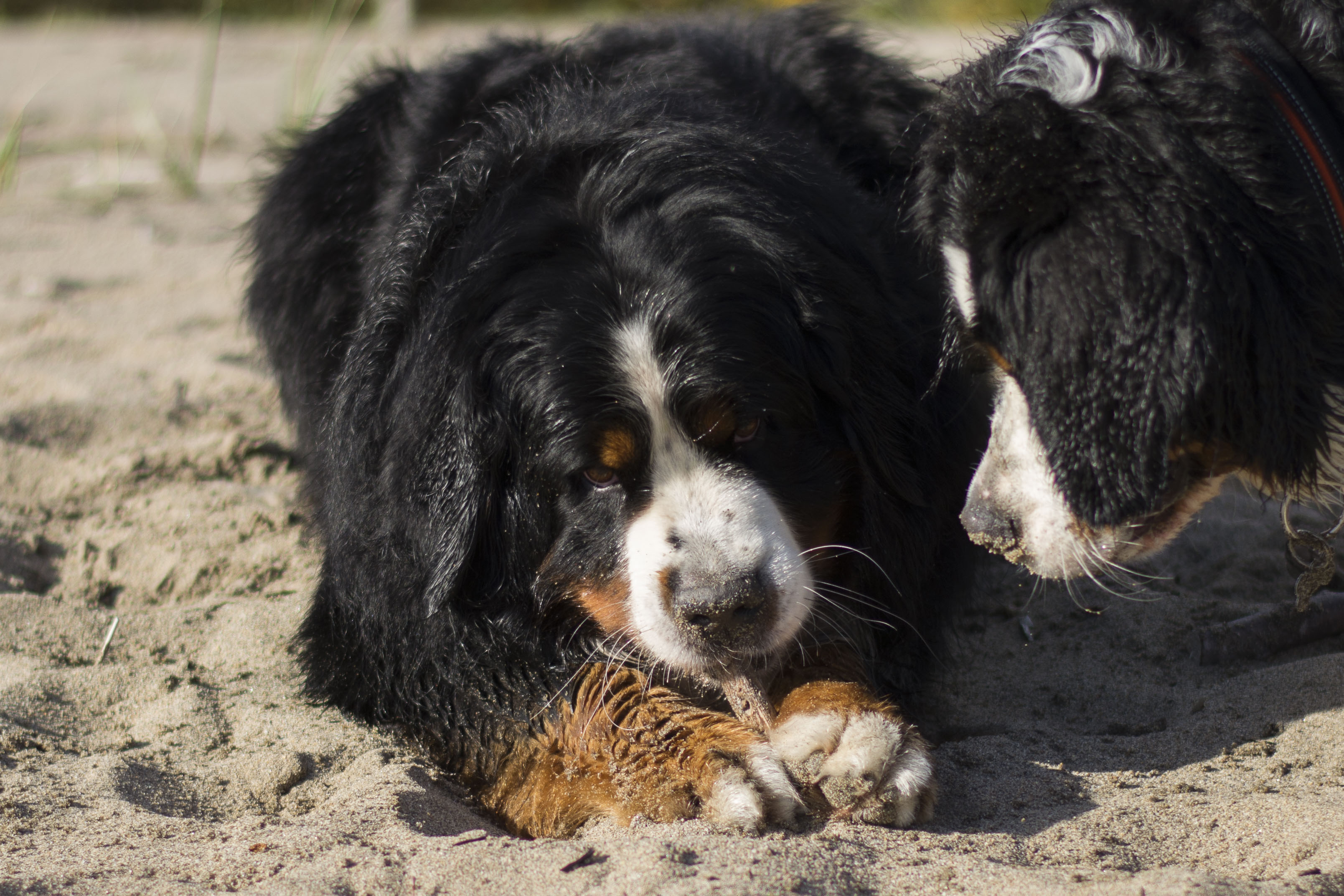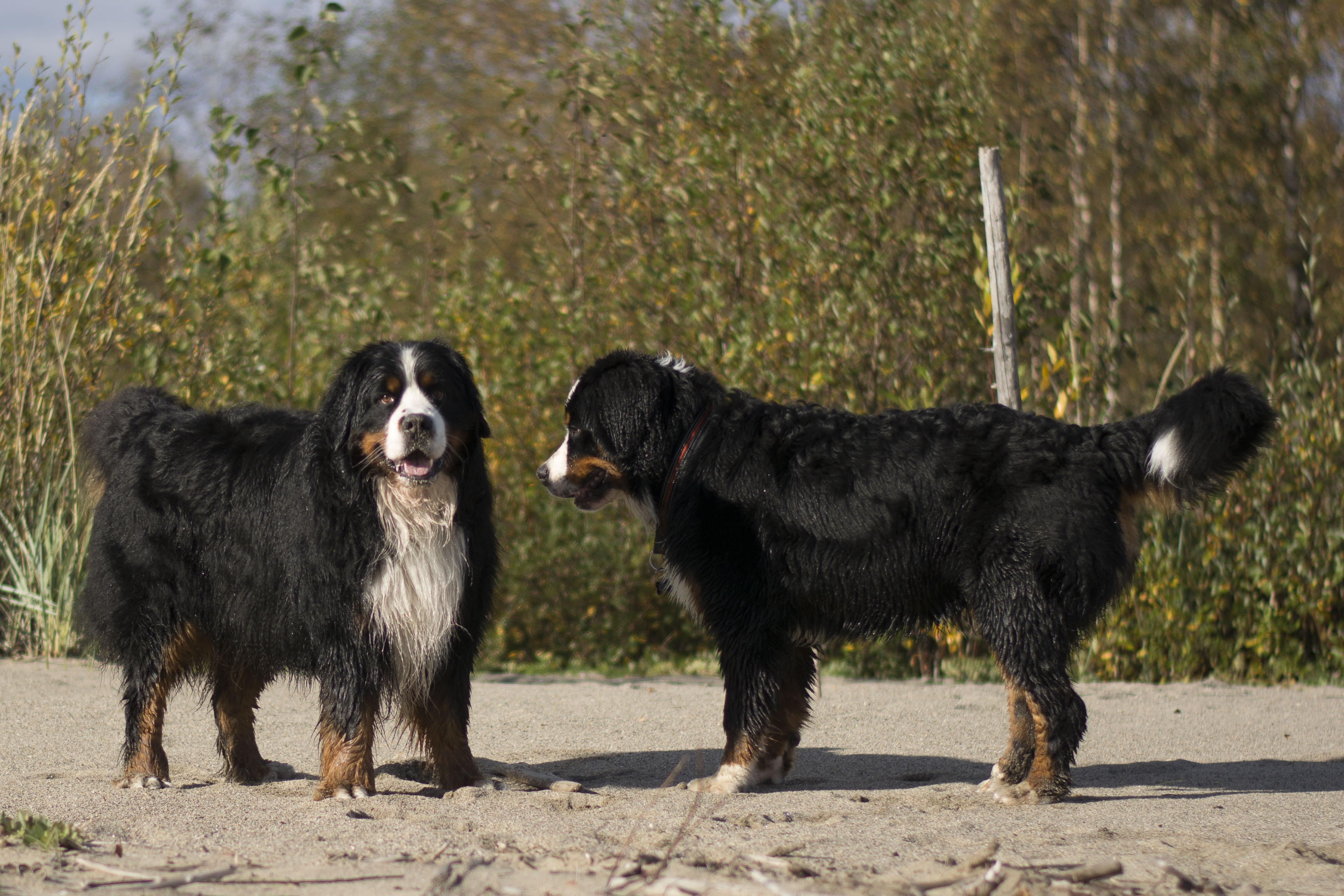 Igår hade vi sennenträff, på väg tillbaka på promenaden så såg jag denna stubbe så jag sa åt Kicki att hon skulle placera Diva där för det var så fin bakgrund, hon skrattade och sa att du kan ju visa först med Lukas …….och tamejtusan! Jag fick både upp honom på stubben och hann några kort, ganska fantastiskt eftersom det var flera andra hundar i vägen som skulle styras bort innan jag kunde ta bilden.