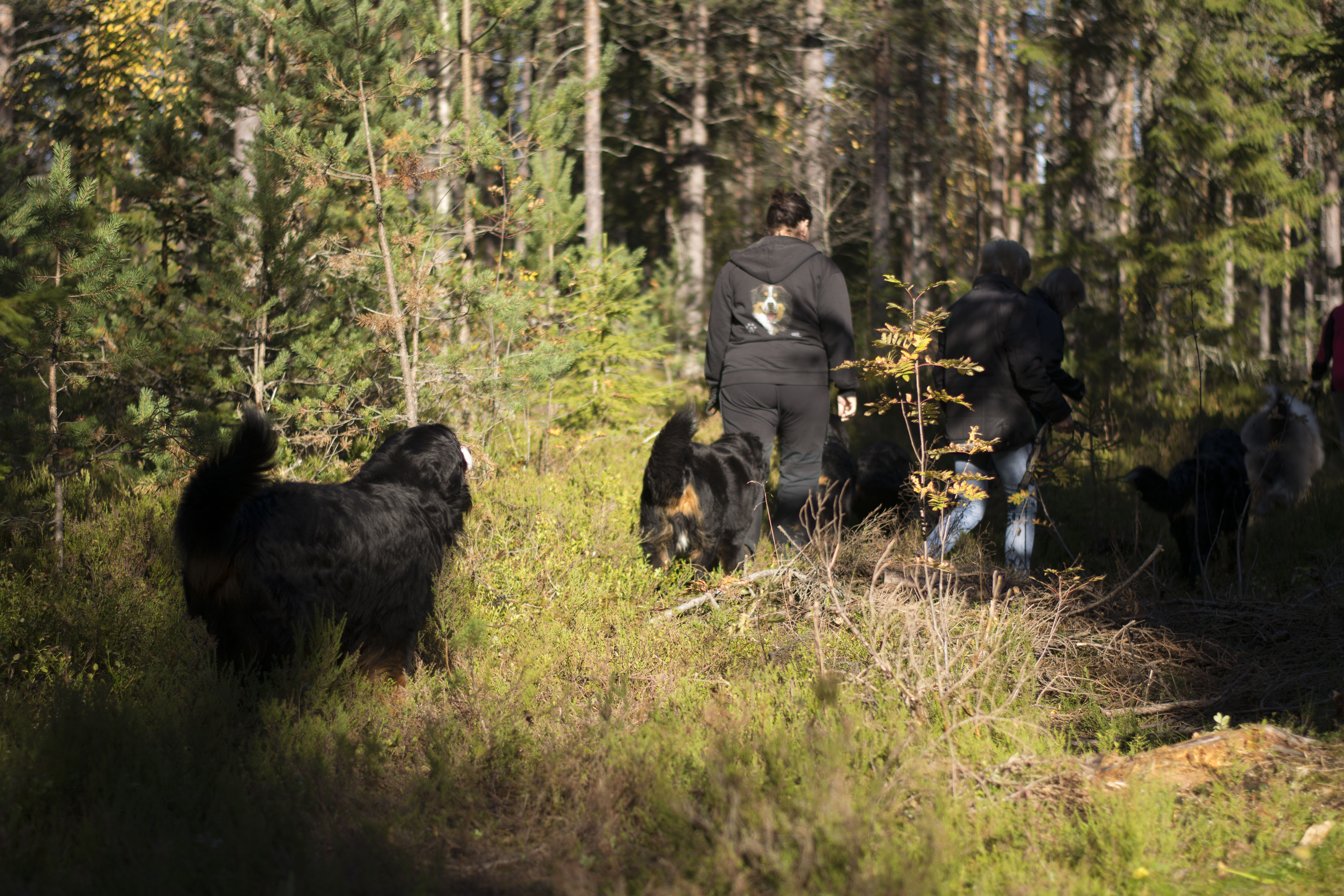 En vecka efter att Aston lämnade oss var jag i skogen med Lukas, det regnade ganska ordentligt och jag hade en ljudbok i örat, vi, eller jag trodde alla fall att det var vi korsade elljusspåret och gick in på en stig som går tvärs över och kommer ut på spåret igen, halvvägs på den stigen så vänder jag mig om och inser att jag inte har nån hund i hasorna fast jag tyckt mig hört honom bakom mig.