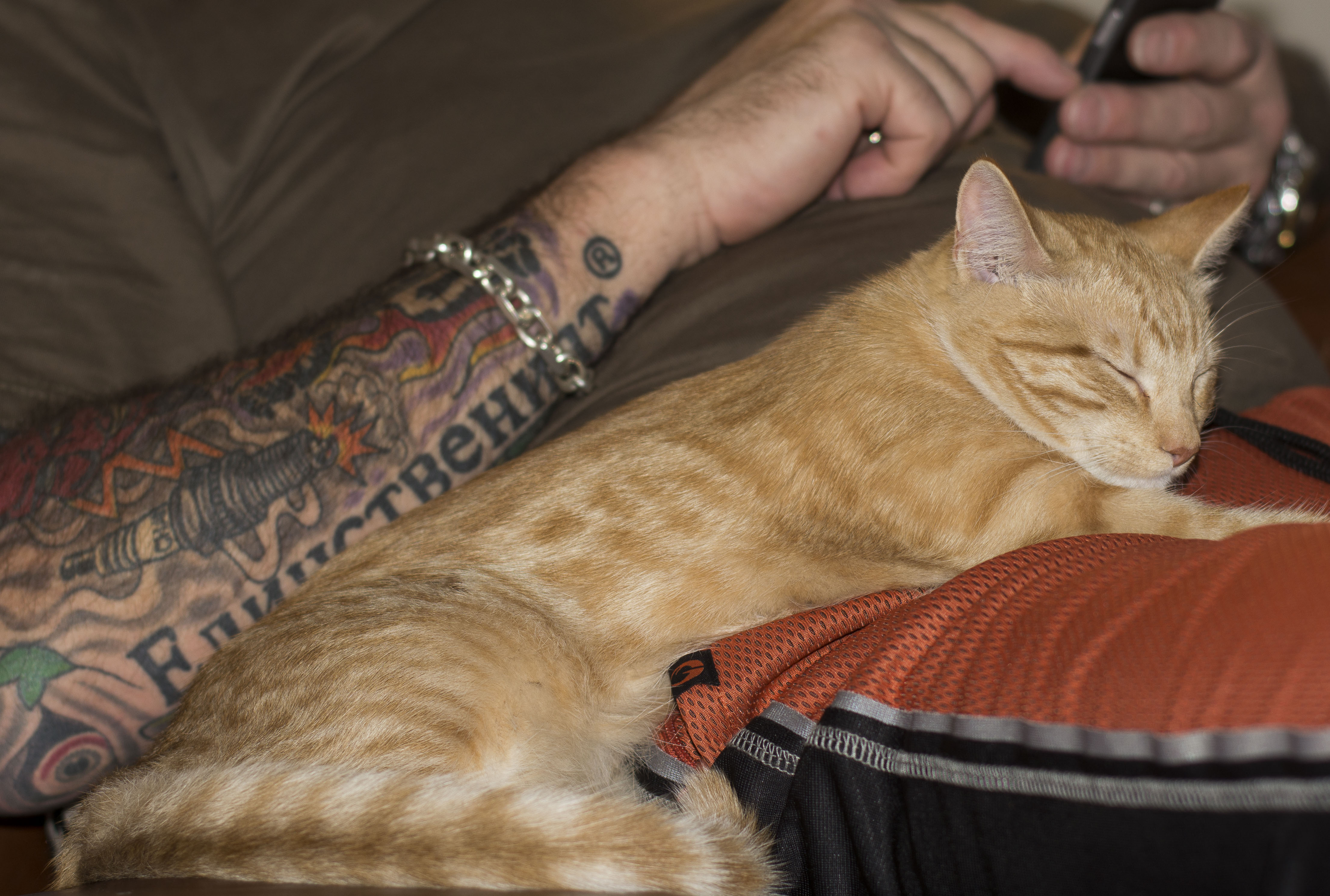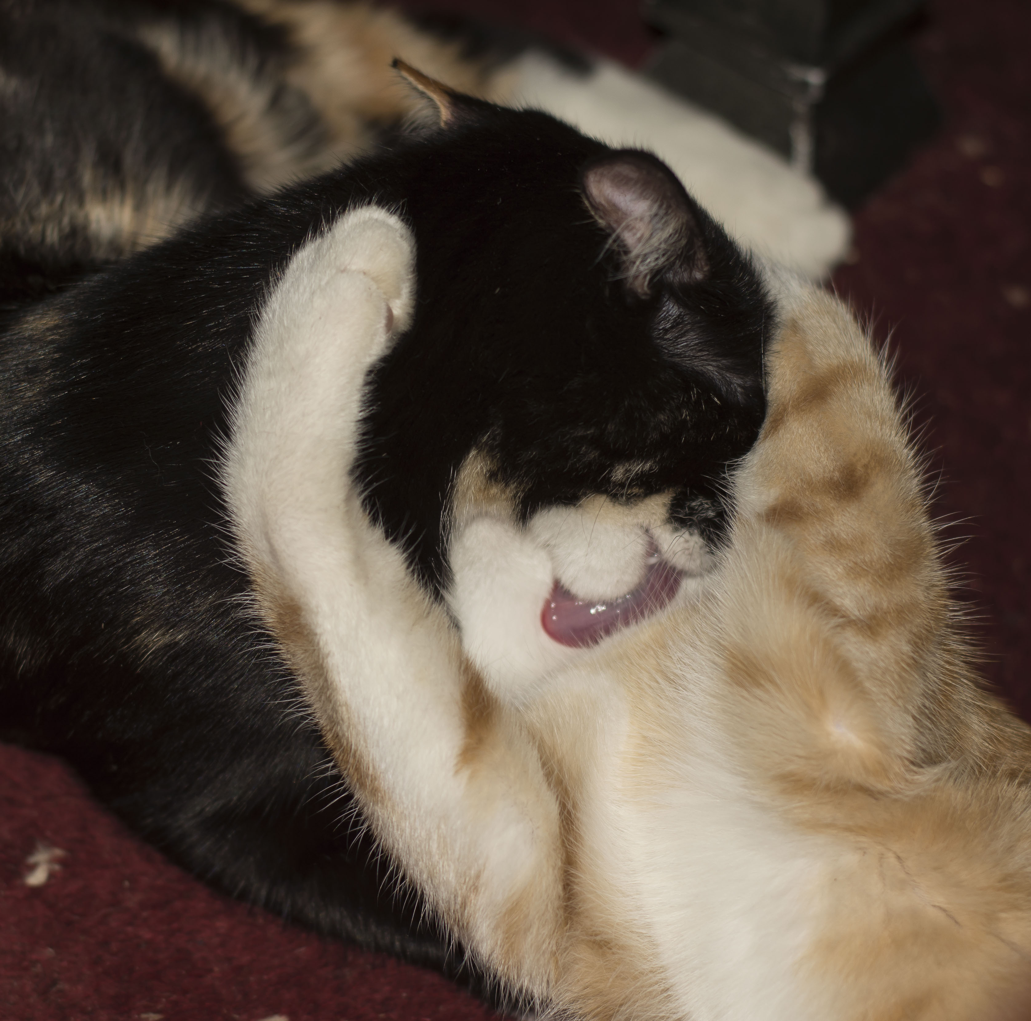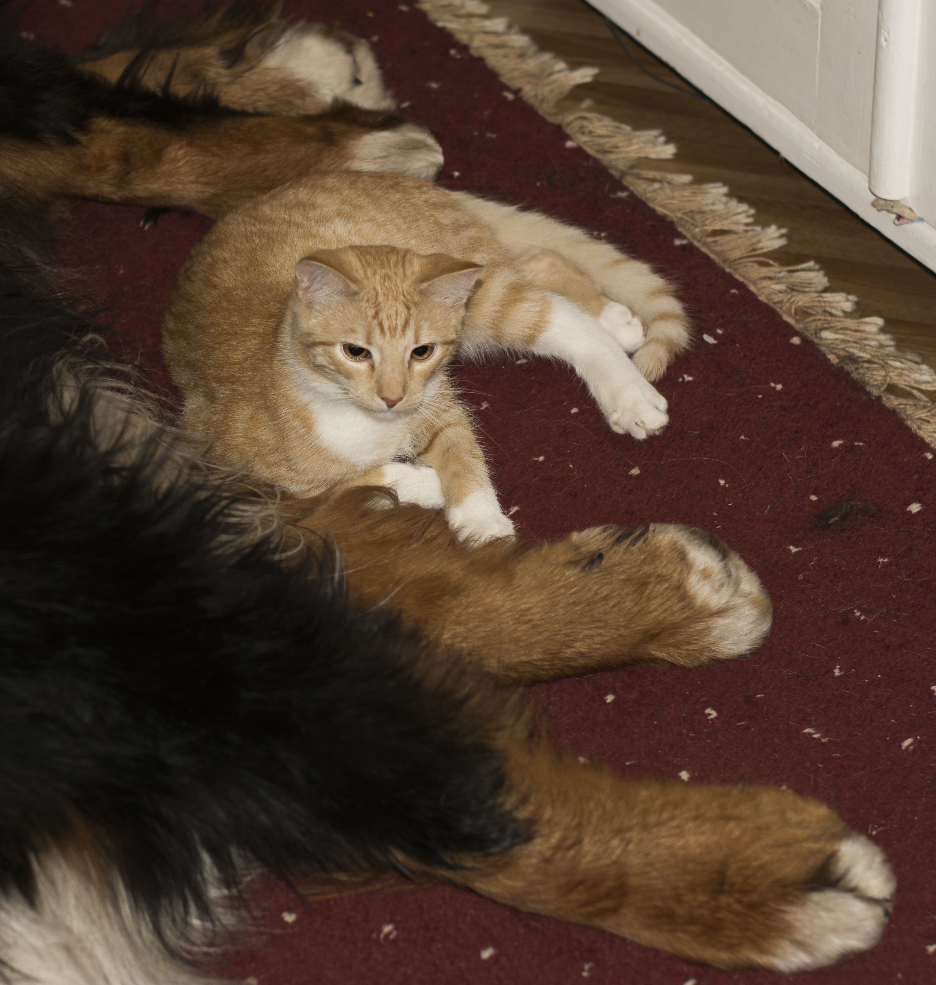 Kattfröknarna har en liten förkärlek för lilla farbrorn men han är mest lite besvärad, han vet inte riktigt vad han ska göra med all denna uppmärksamhet?