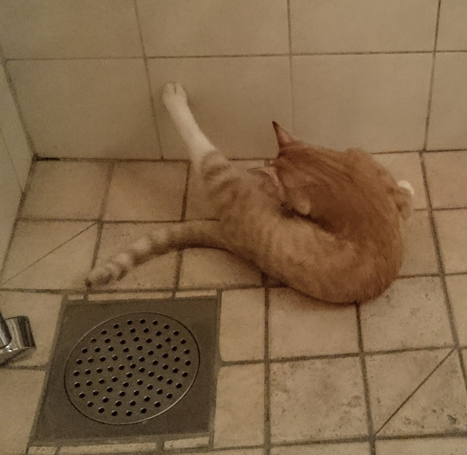 Nuförtiden har man alltid sällskap på toa, morgontoalett i duschen !